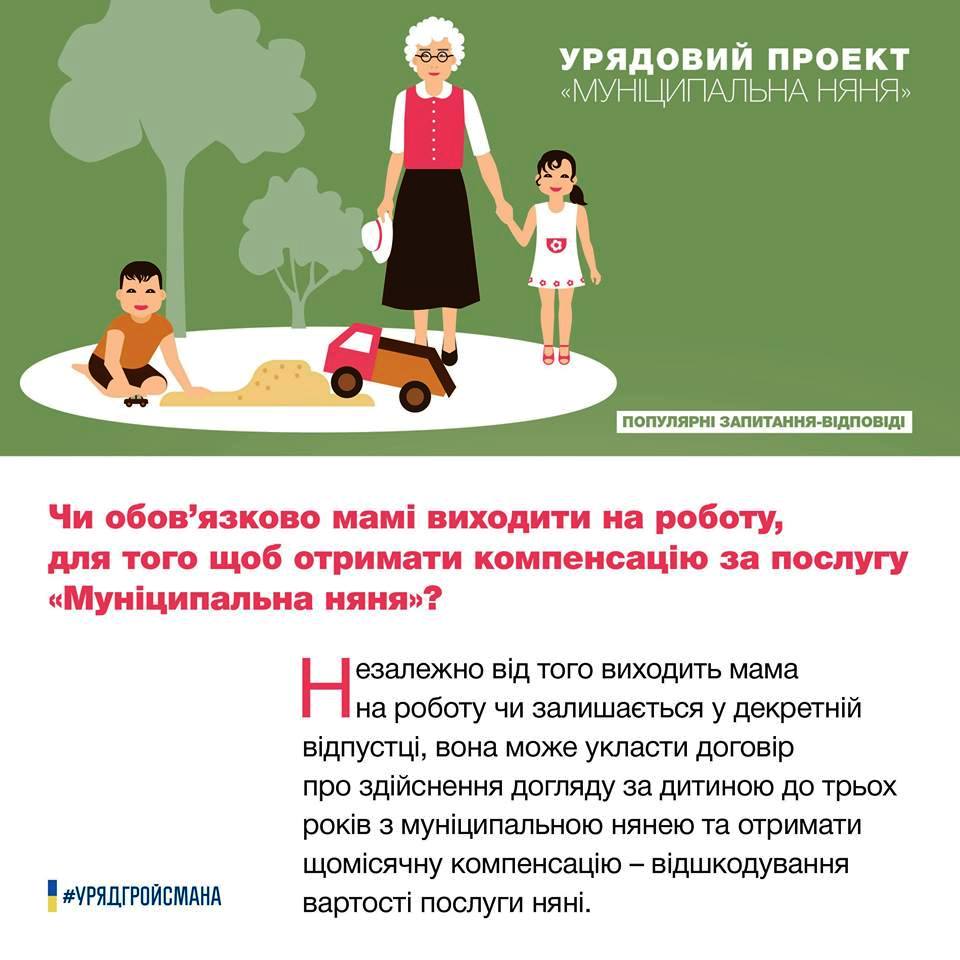 1. Чи обов’язково мамі виходити на роботу, для того, щоб отримати компенсацію за послугу «Муніципальна няня»?