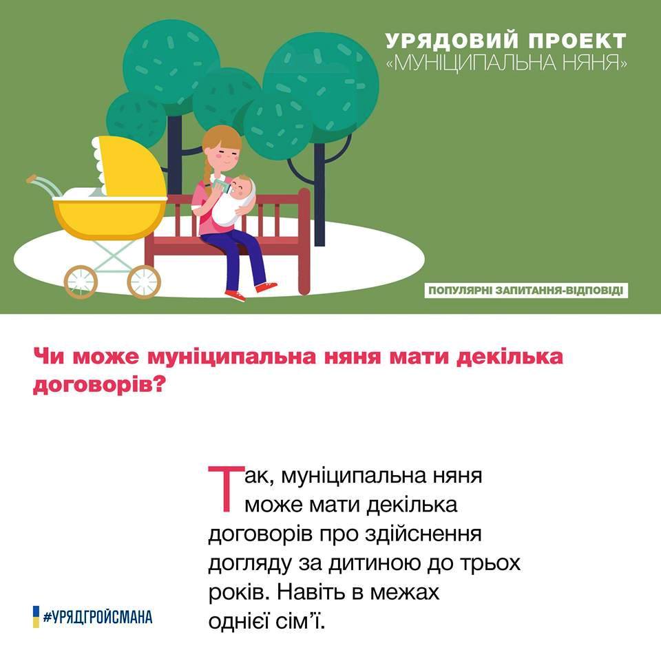 Або навпаки. У сім’ї двоє маленьких дітей і одна няня. У такому випадку є право у батьків оформити два договори з одною муніципальною нянею і отримувати додатково на кожну дитину 1 626 грн.