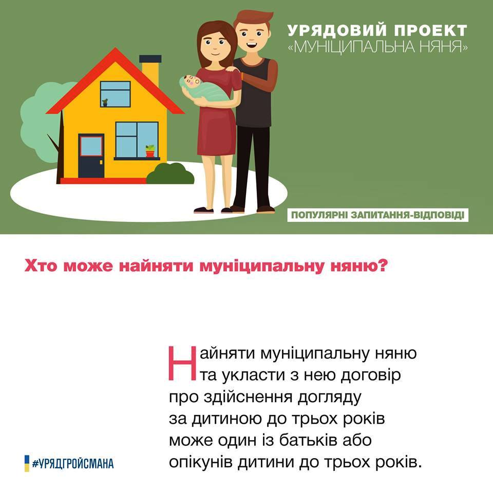 З 2019 року в Україні запрацював ще один вид соціальної допомоги новоспеченим батькам – «Муніципальна няня». Це додаткова грошова допомога від Уряду молодим сім’ям.
