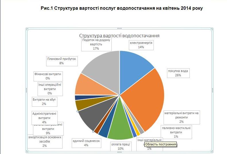 Рис.1 Структура вартості послуг водопостачання на квітень 2014 року