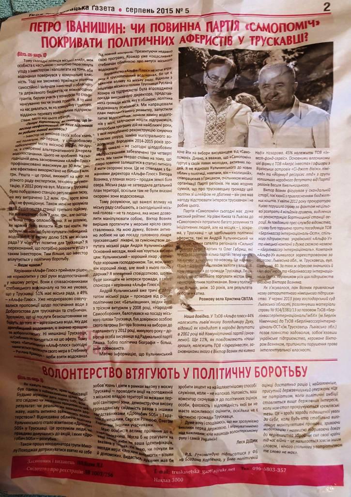 Вже багато трускавчан мене попереджали, що у місті працюють політтехнологи Кремля… Власне, такі ж “газетки”, напевне, підтверджують версії земляків.