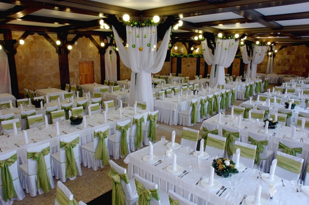Професійні кухарі готельно-курортного комплексу «Карпати» забезпечать Вам по-домашньому смачне меню, фуршет козацький та фруктовий стіл. Враховуючи вимоги часу, все буде зроблено максимально продумано без зайвих непотрібних Вам витрат. Якщо гості добре поїли, а ще нема настрою танцювати – можна вийти провітритися і знову ж насолодитися чудовою територією оздоровниці. З банкетного залу є прямий вихід на вулицю.
