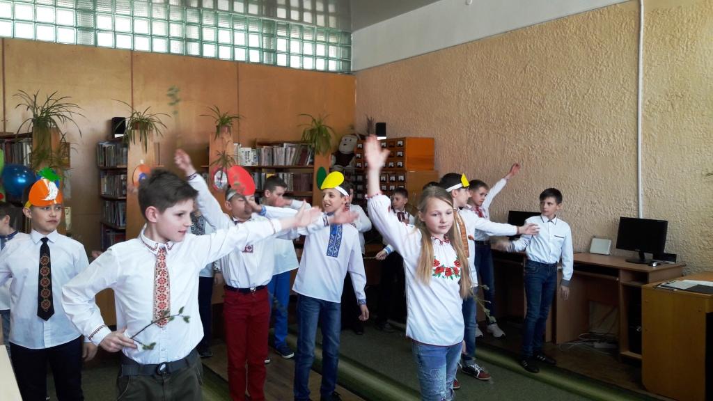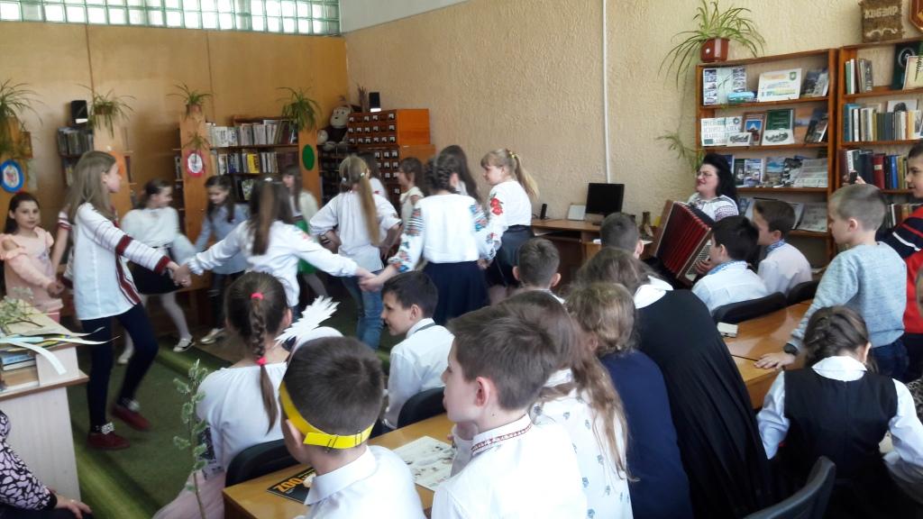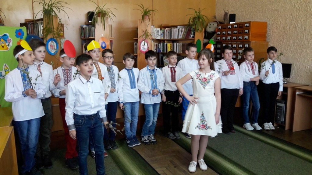 Весняний Вістунець, роль якого зіграв Любомир Закутинський, прийшов зі свяченою вербицею сповістити, що увесь хрещений люд готується до найкращого свята – Великодня. Каріна Яцуляк, Оля Гаркава, Надія Кірда, Павлина Давидова потішили всіх жартівливими коломийками “Розписую писаночку”. Учні 5-Б класу показали сценку “Великодній кошик”. Учасники ансамблю “Соколи” та “Україночка” співали пісні, читали вірші та виконали танець “Вербовая гілочка”. Закінчилось Великоднє свято гаївками “Кривий танець”. “Кувала зозуля у зіллю” . “Он хлопці он, на горі льон” та інші. В бібліотеці панувала справжня Великодня атмосфера, на обличчях дітей сяяла квітуча усмішка.