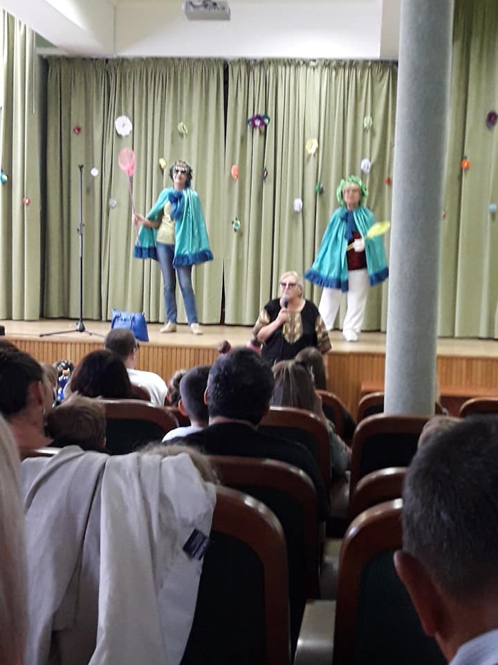 А далі була вистава-розповідь про життя комах (мухи, бджоли, метелика), а також про хробачка Омелька та жирного вгодованого котика і його господиню. Під запальну музику (зокрема, і коломийки) танцювали не лише актори, але й присутні дітлахи. Вистава була досить простенькою, але з важливим моральним підтекстом.