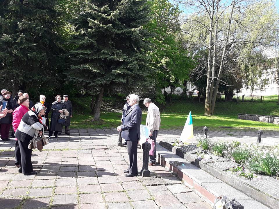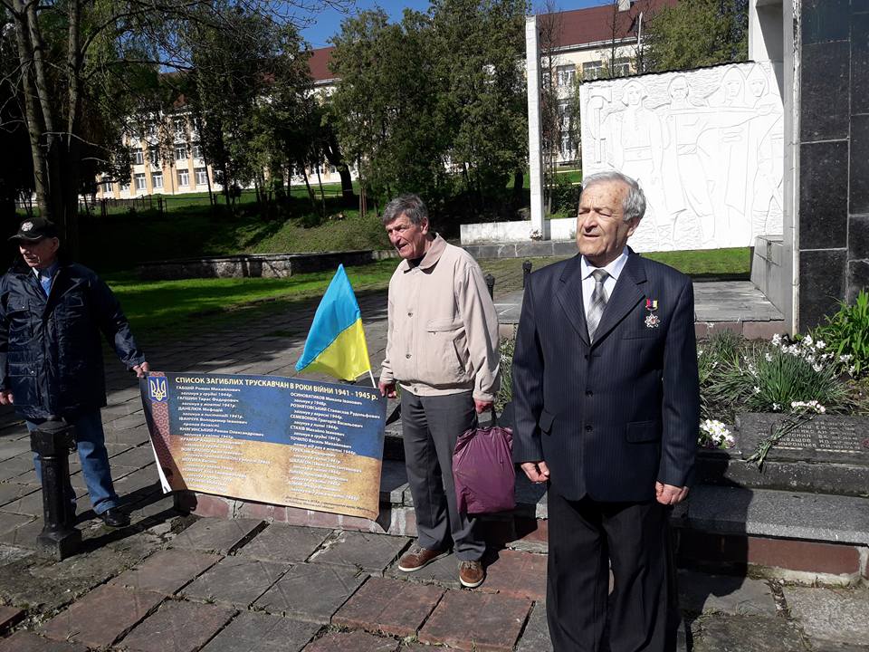 На віче пам`яті з нагоди Дня перемоги виступив голова Ради ветеранів Трускавця Віктор Бессарабов. Він згадав про день 22 червня 1941 року, коли на самому початку радянсько-німецької війни перші бомби впали в селі Модричі і це були перші жертви, загинули молоді воїни.