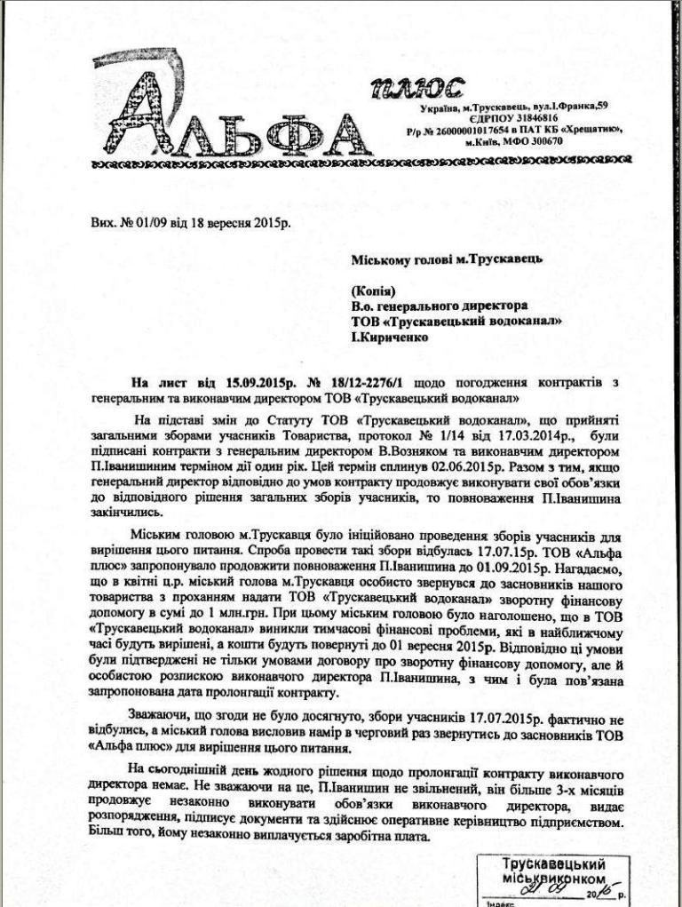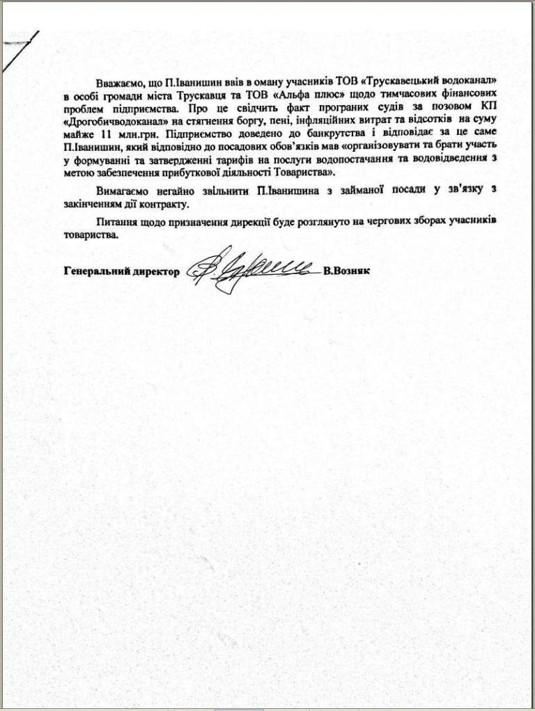 Без коментарів. За доведення трускавецького водоканалу до банкрутства відповідає Петро Іванишин