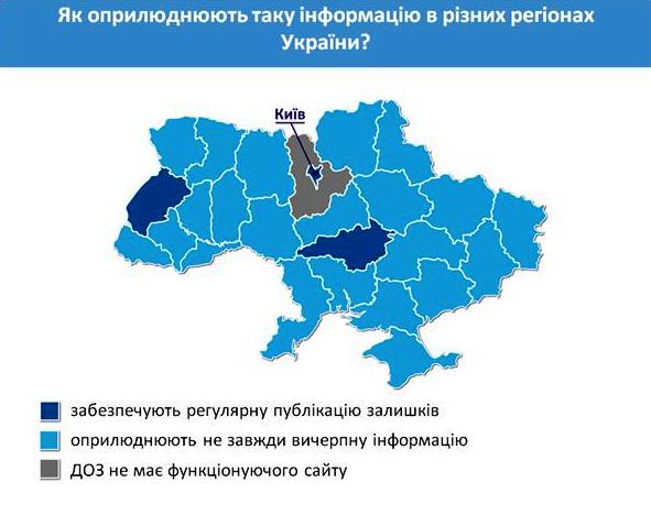 Інформація щодо наявних ліків та медичних виробів, які закуповуються за бюджетні кошти, в медичних закладах має оприлюднюватись на офіційних веб-сайтах департаментів охорони здоров’я обласних держадміністрацій, а також сайтах медзакладів та в самих медзакладах. Проте далеко не в усіх регіонах виконують цю вимогу, в більшості оприлюднюють інформацію частково або нерегулярно, в деяких випадках сайти для пошуку цієї інформації є не дуже зручними. Тому МОЗ працює над створенням єдиної електронної системи обліку залишків ліків, що дозволить ефективно управляти процесами їх постачання та використання у медзакладах. Окрім того, готуються зміни до законодавства, які передбачатимуть посилення контролю за оприлюдненням інформації щодо залишків ліків та встановлення покарання за невиконання цієї вимоги.
