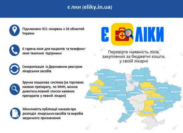 Дізнатись про наявність ліків в конкретній лікарні можна також на сайті eliky.in.ua, який був створений громадськими організаціями. До системи «Є ліки» на даний час підключена 921 лікарня з 18 областей. На сайті в пошуку можна задати торгову назву препарату або діючу речовину (МНН), який виписав лікар, і дізнатись, чи є цей препарат в конкретній лікарні. В разі наявності, він має надаватись пацієнту безкоштовно.
