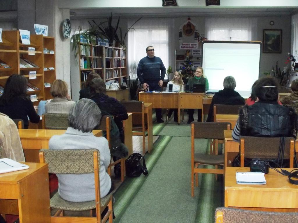 29 січня в Трускавецькій центральній бібліотеці відбувся семінар, який провела Оксана Потимко – виконавчий директор Львівського обласного осередку ВГО «Українська спілка інвалідів» і є керівником даного проекту, Михайло Петрів – керівник ресурсного центру для допомоги незрячим дітям, Марта Сидоряк – консультант з ресурсних технологій. Бібліотекарі пройшли навчання, тренінг та майстер-клас, як користуватися програмою та записувати тексти в форматі дейзі.