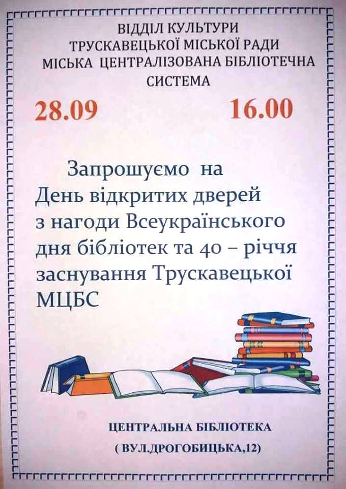 Державний спеціалізований санаторій «Батьківщина» (м. Трускавець) запрошує на роботу: – психологів, –  соціальних педагогів, – фахівців з соціальної роботи, – соціальних працівників з відповідною освітою на постійну роботу. Телефон: 097-584-23-76. (Переглядів 1 , 1 переглядів сьогодні) Також читайтеКозацька слобода “Раковець” запрошує на риболовлю (0)Запрошуємо вивчати англійську мову! (0)Потрібен викладач англійської мови! (0)Запрошуємо юних футболістів (0)