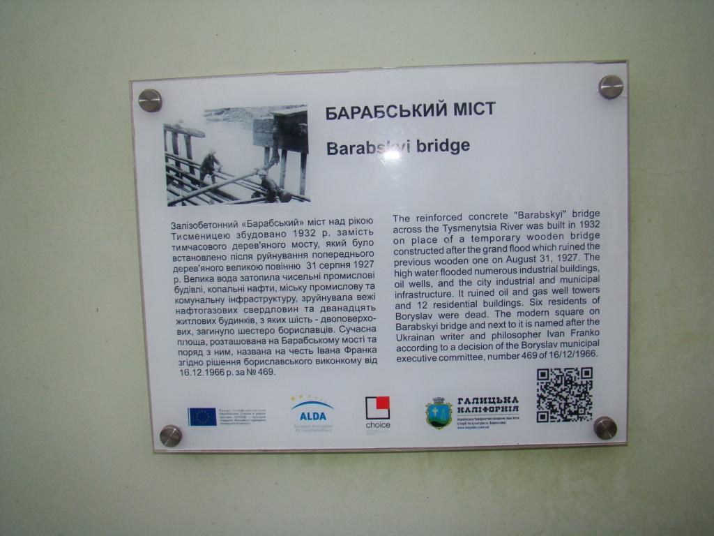Недалеко від Барабського мосту знаходилася аптека, яка була відкрита у березні 1876 р. Яном Зегом, творцем методу промислової нафтової переробки. До речі, в цій аптеці була відкрита перша автозаправна станція, оскільки автомобілі колись заправляли в аптеках. Автомастила фірми «Шелл» та «Галіція» виробляли в Бориславі
