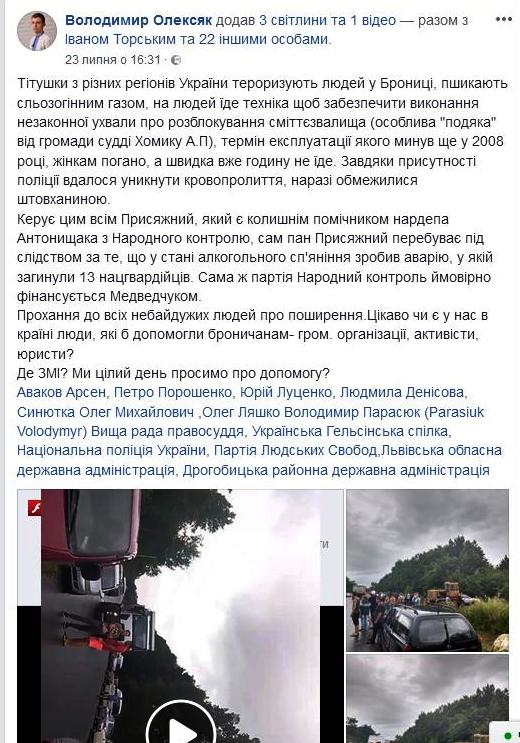 Ось як трактує події 23 липня на Броницькому сміттєзвалищі громадський активіст, дрогобичанин Олег Дьорка:
