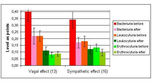 Тож цілком закономірно, що в обох випадках суттєво зменшується клінічна вираженість бактерійурії і лейкоцитурії.