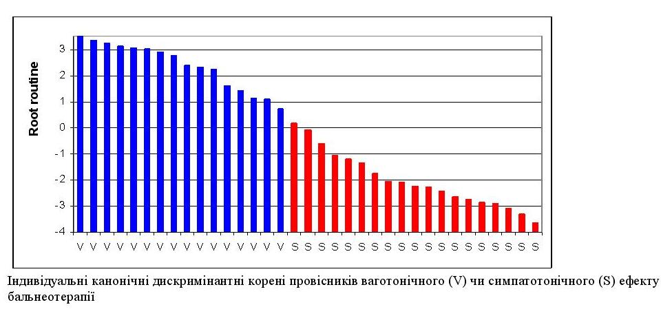 Індивідуальні канонічні дискримінантні корені провісників ваготонічного (V) чи симпатотонічного (S) ефекту бальнеотерапії
