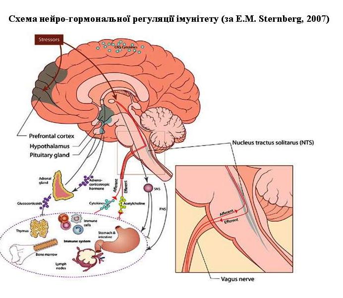 Схема нейро-гормональної регуляції імунітету (за E.M. Sternberg, 2007)