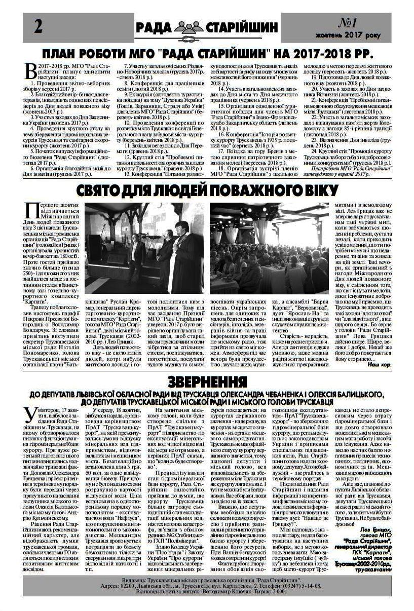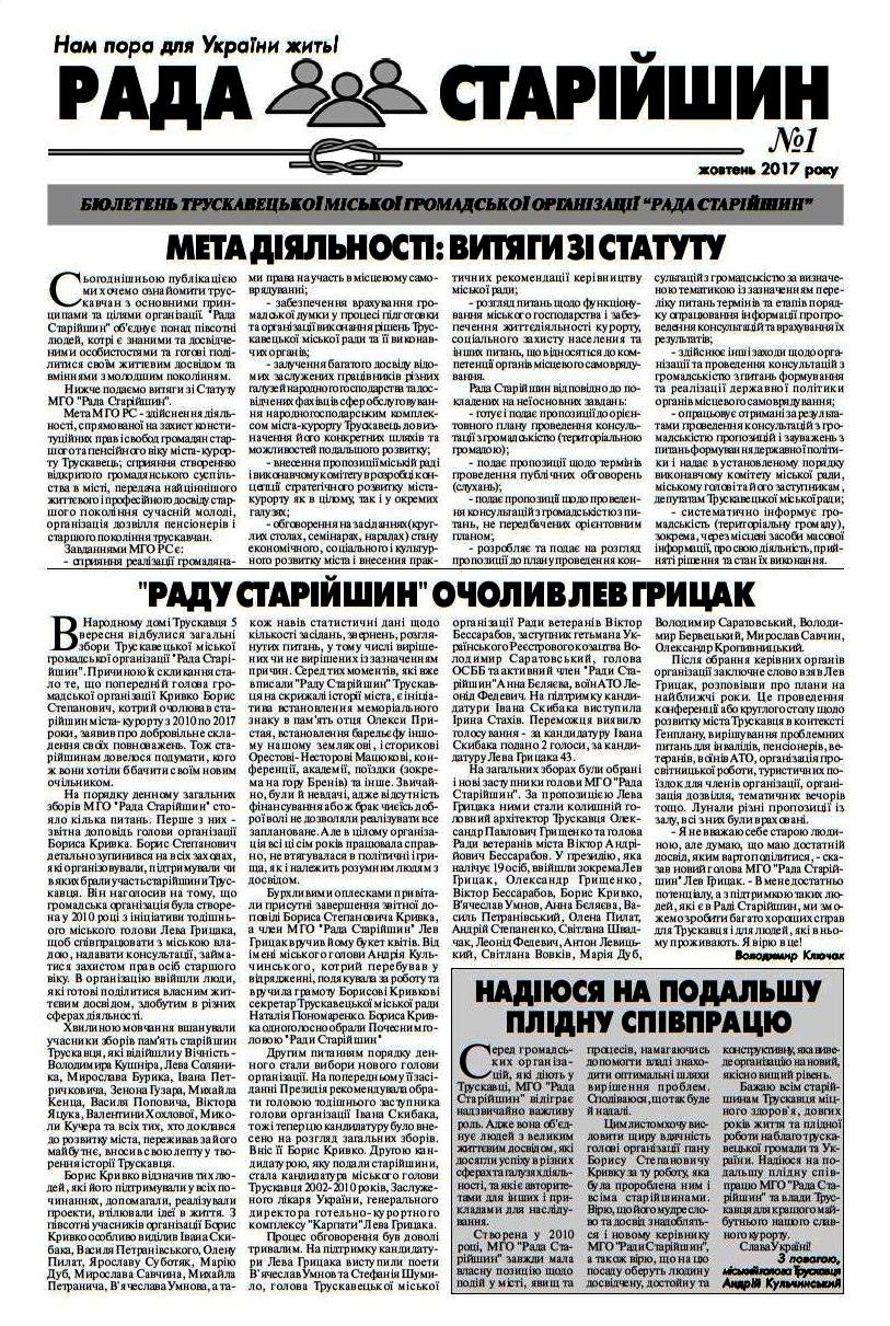 Бюлетень “Рада Старійшин”, №1 від 20 жовтня 2017 р.