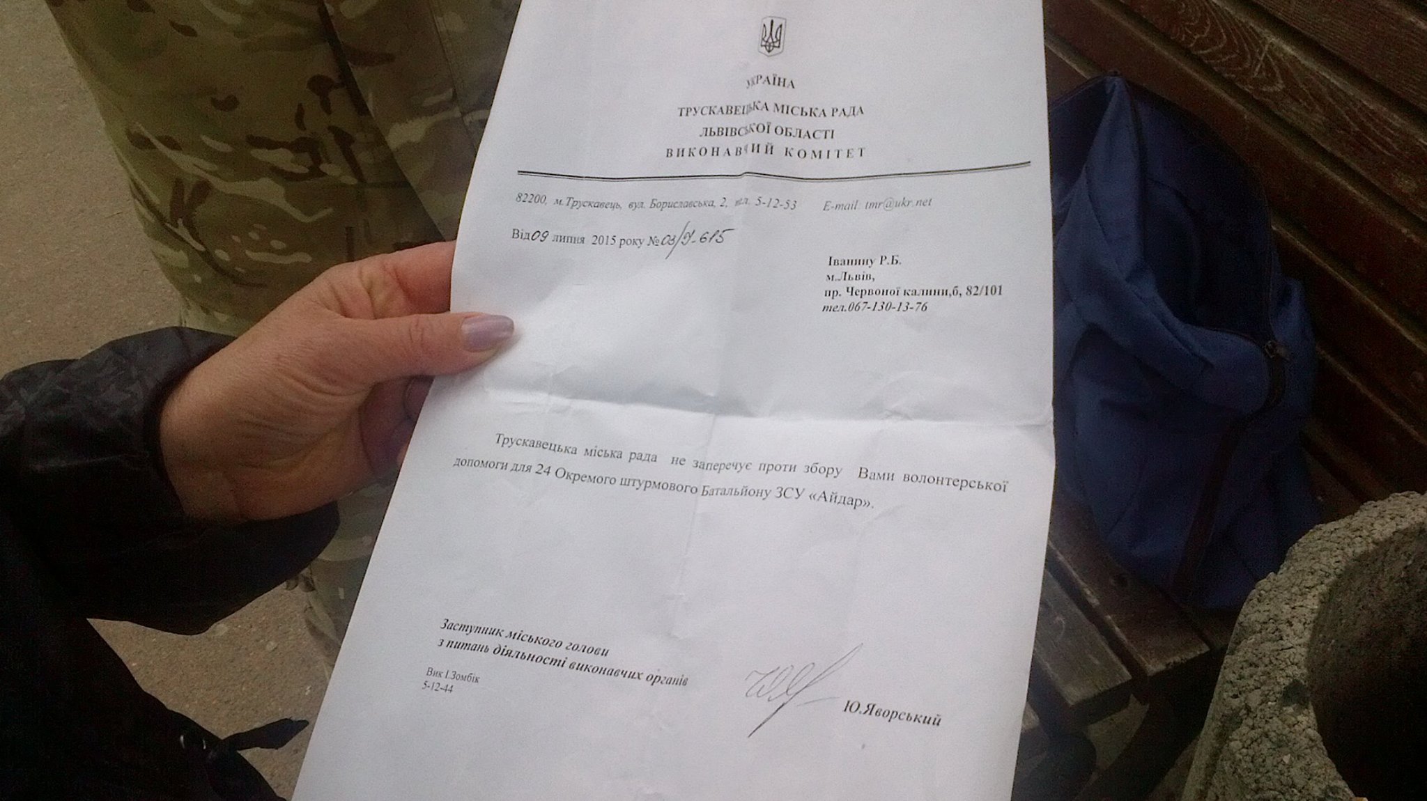 На запитання Сергія Розори, чому ж тоді у Трускавецькій міській раді видають протягом ОДНІЄЇ години якісь документи для немісцевих (волонтерів\гастролерів) і вони збирають кошти не маючи ніяких підтверджень, що вони для армії це роблять і не є шахраями, то міський голова відповів, що і самі волонтери “Дрогобиччина SOS” йому не представили ніяких підтверджуючих документів також. Правда, Лесі Дідик і її “волонтерам”, які також не мають документів дали дозвіл розмістити їх скриньку в фойє міської ради, тобто сприяють в діяльності “чемних” до міського голови активістів. Чи можна буде розмістити скриньки для збору коштів для “Дрогобиччина SOS” – подивимось..