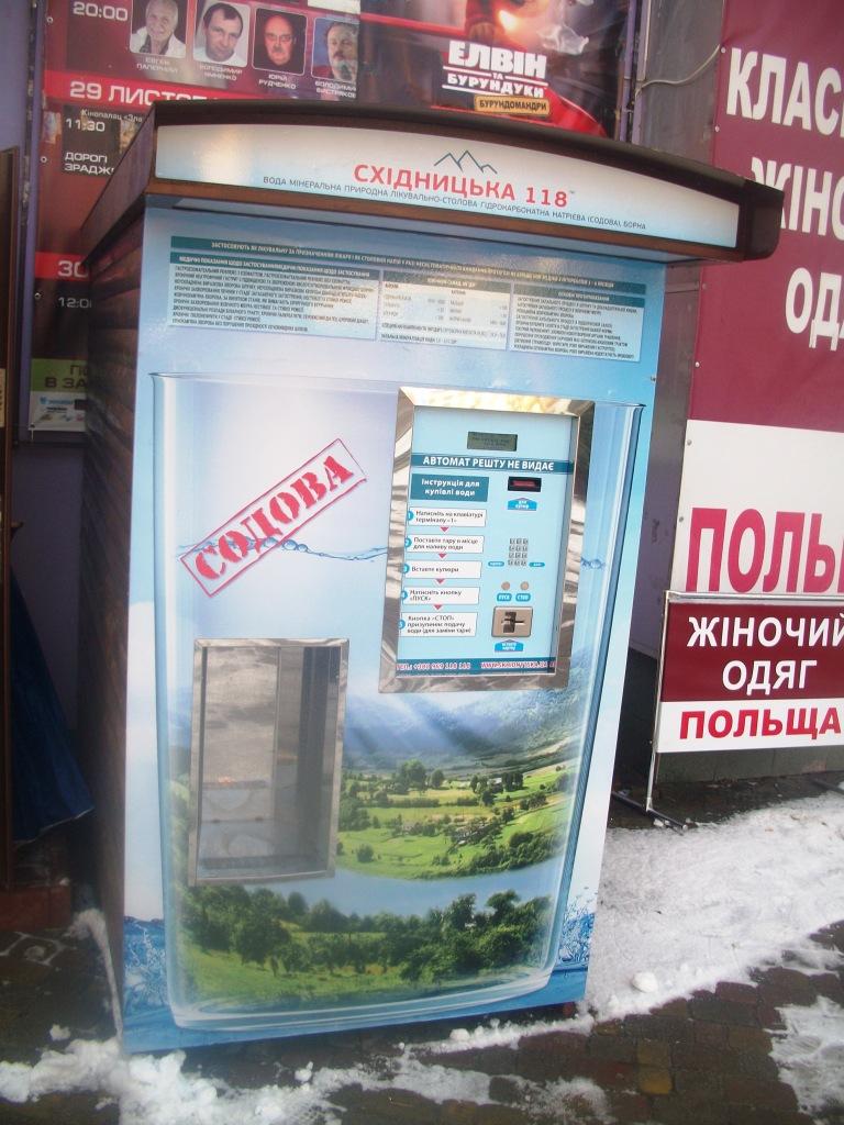 Нещодавно у Трускавці біля кінотеатру «Злата» встановлено апарат для продажу мінеральної води. Більшість трускавчан або взагалі не зауважили цього, або ж поставилися до встановлення апарату байдуже, тим більше, що це далеко не перший випадок реклами курорту-сусіда у Трускавці. Та є й такі, хто виступає проти подібної реклами – ці люди зателефонували в редакцію «Трускавецького вісника» та попросили розмістити фото апарату «Східницька118». Тож просимо долучитися до дискусії – чи правильно це, що Трускавець рекламує Східницю?