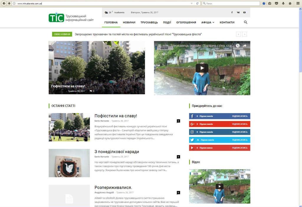 Нещодавно в Інтернеті чисто випадково натрапив на новий трускавецький сайт. Випадковість полягала в тому, що на запит «Трускавецький інформаційний центр» (стосовно діяльності комунального підприємства Трускавецької міської ради, яке зараз очолює депутат ТМР Віра Сазонова) пошукова мережа показала якийсь новий ресурс під назвою «Трускавецький інформаційний сайт». Трапилося це 22 травня, тоді ж одна стаття з цього сайту (інтерв’ю з колишнім головою міста Болеславом Денисовичем Петровським) була розміщена з відповідним посиланням і на «Трускавецькому віснику». Щоправда, тоді на сайті красувалася назва «Цікавий Трускавець», яку зараз чомусь змінили на «Трускавецький інформаційний сайт». Шкода, бо назва «Цікавий Трускавець» є явно кращою.