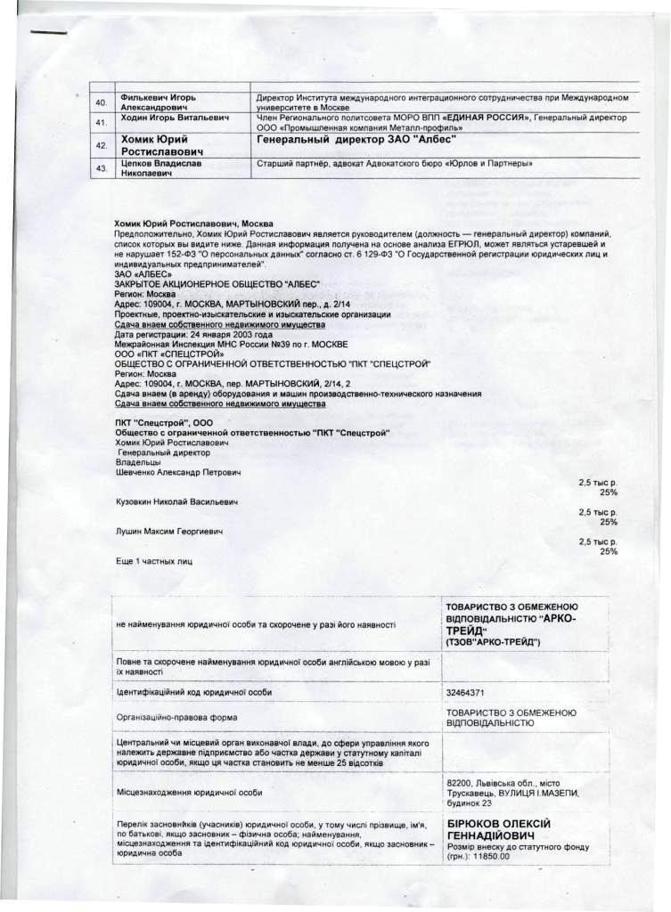 Такими ж словами називають голів незалежних профспілок і їх членів. Але давайте подивимося хто є хто. Ми маємо інформацію про бізнес пана Козира, його партнерів і чомусь доріжка веде аж до «Єдиної Росії». Ксерокопії паперів додаємо.