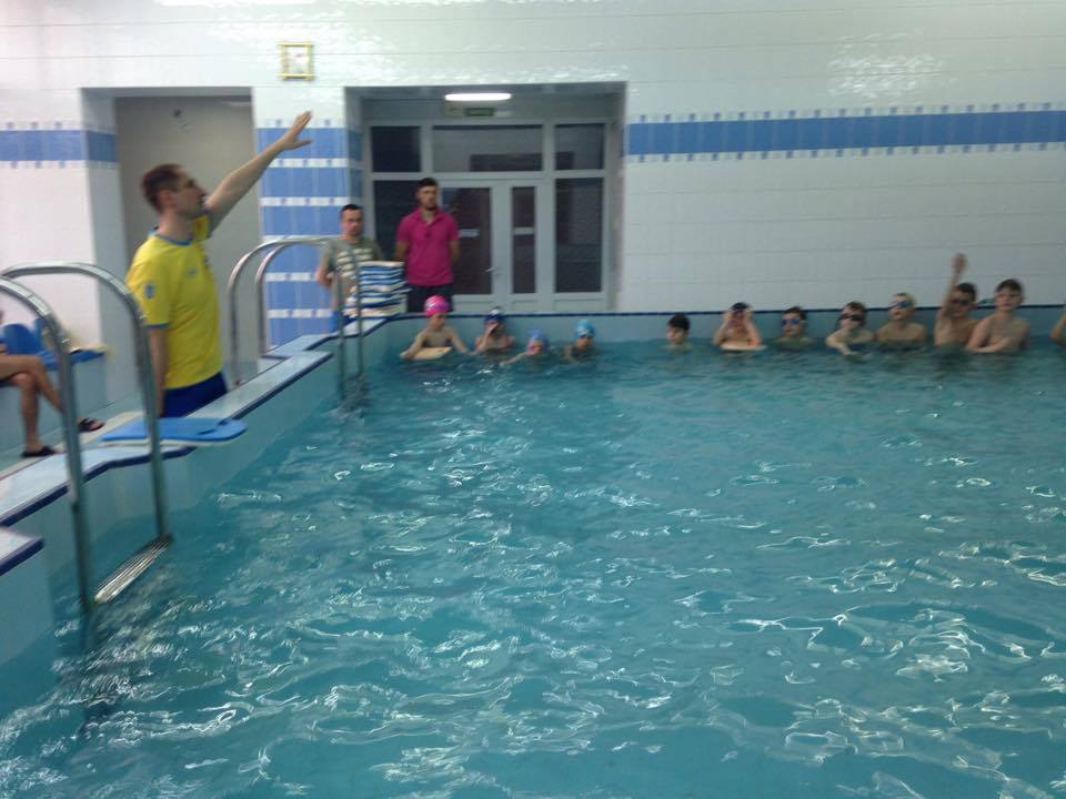 Основною причиною приїзду були презентація методик Школи дитячого плавання Дениса Силантьєва, за якими вже більше півроку займаються діти ДЮСШ “Спортовець” м. Трускавця, та майстер-клас для дітей.