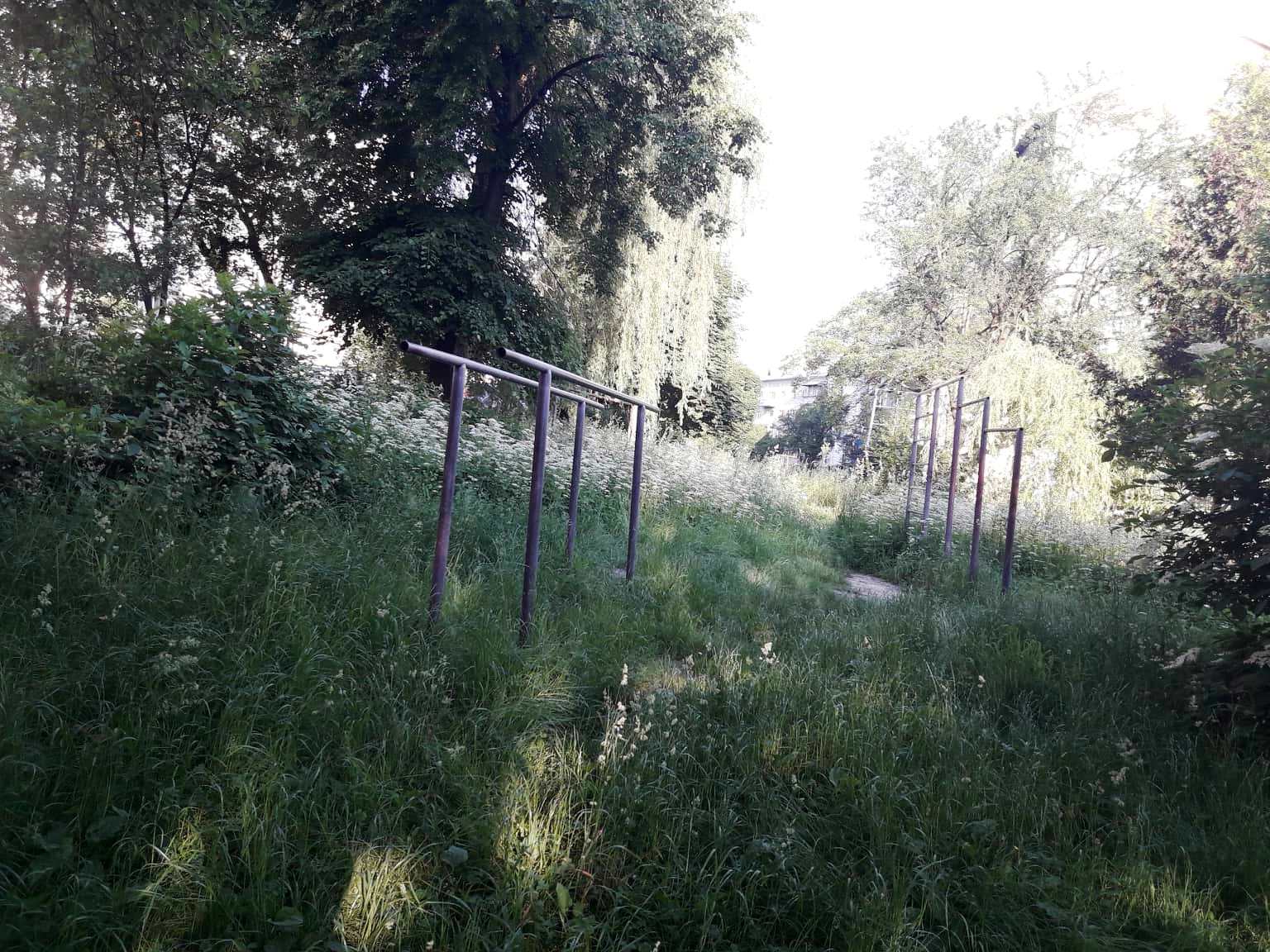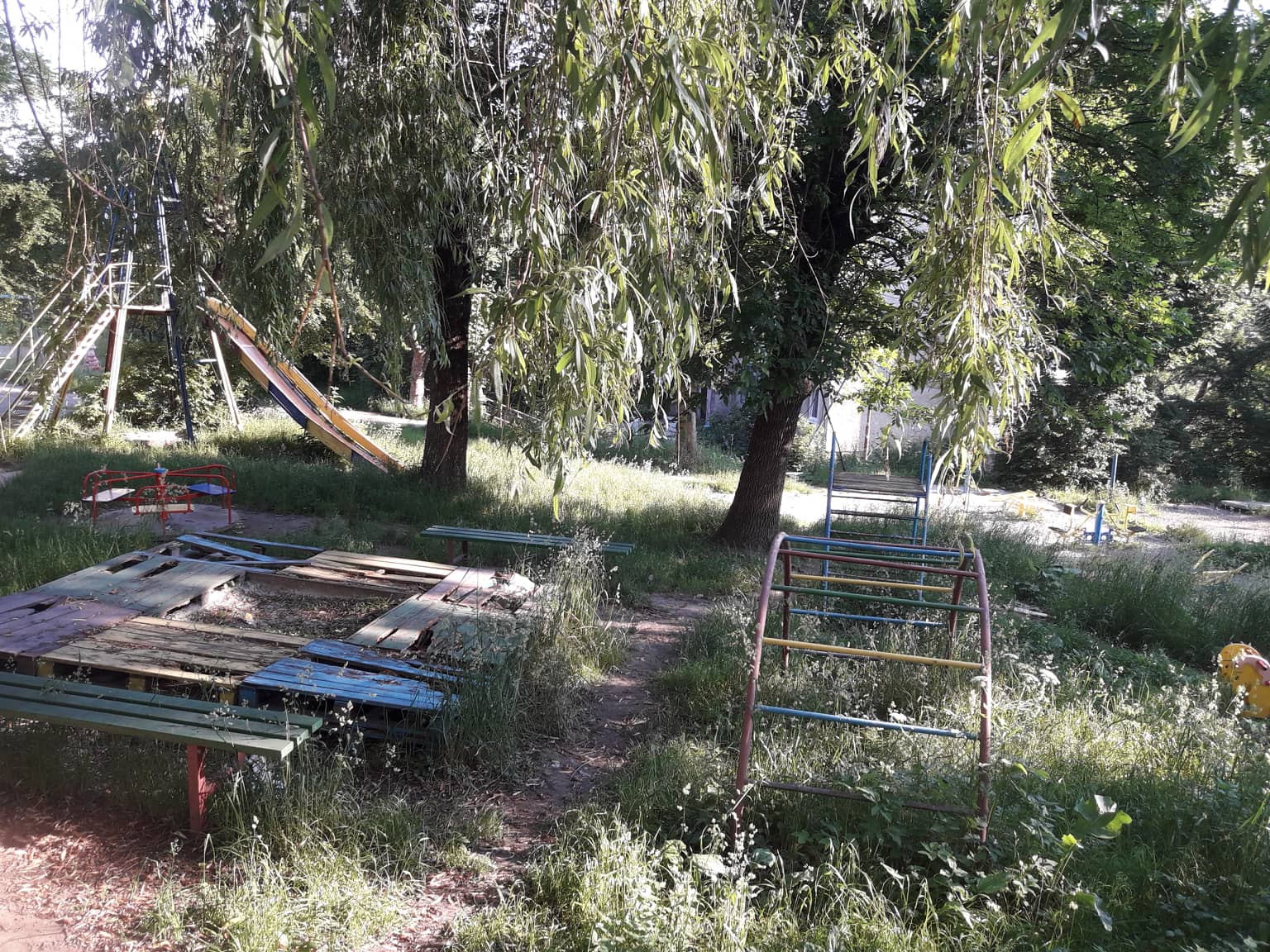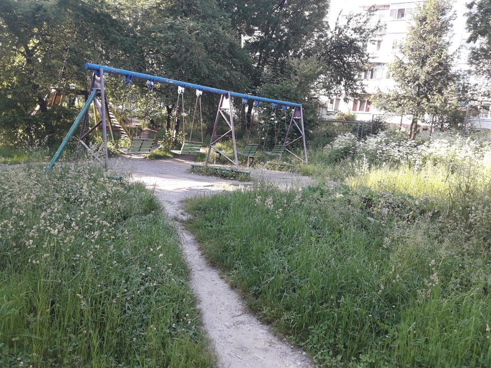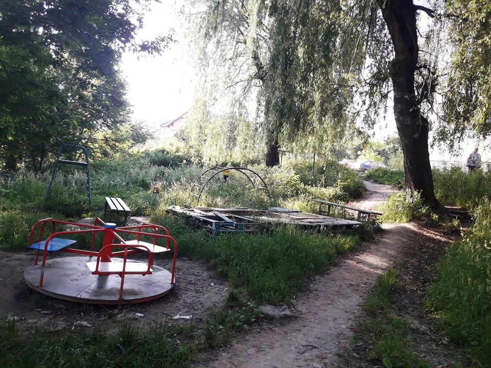 Але є й такі занедбані площі забав, що заходити на них страшнувато не тільки дітям, а й дорослим. У високій траві щось шелестить чи сичить, незмащені поіржавілі металеві конструкції скриплять під подувами вітру, а гойдалка на одному кріпленні хитається і наче запрошує до небезпечних екстремальних випробувань. Одним з таких непривабливих «майданчиків» є територія біля Івасюка, 1 та 1-А.