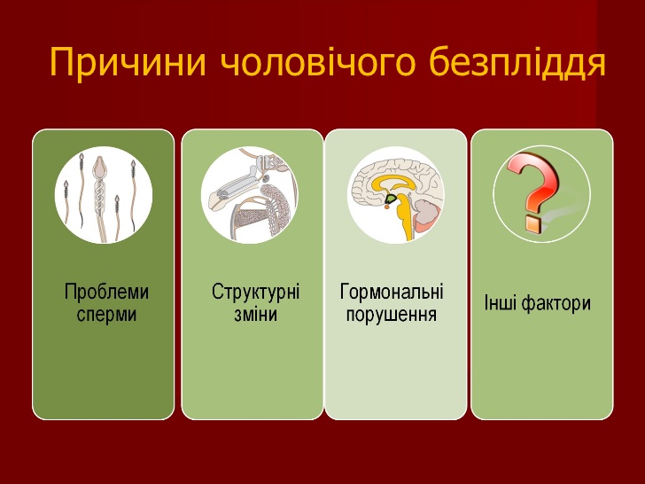 Загалом нездатність сім`ї до зачаття і народження дитини у шлюбі 45% випадків зумовлена захворюваннями чоловіків, у 35% – жінок і в 15% випадків – імунологічна несумісність партнерів або інші причини.