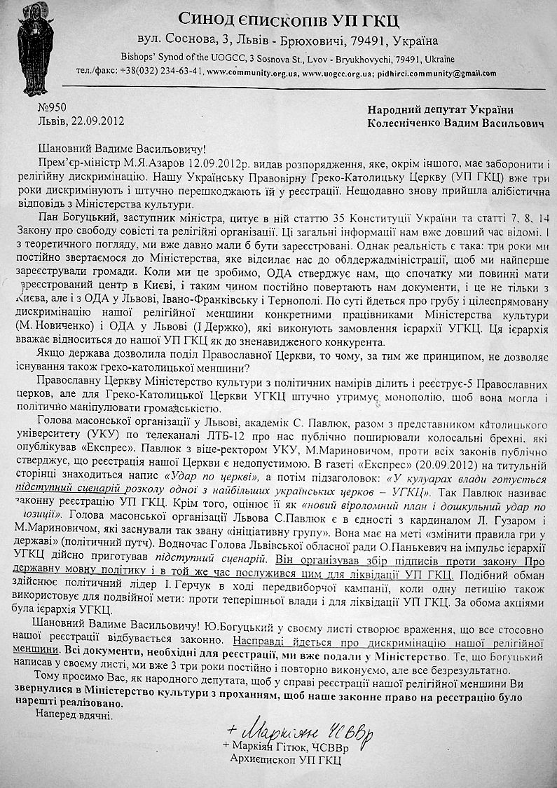⁷⁶ Богданна Мартиник. Удар по Церкві // Експрес, 24.09.2012.