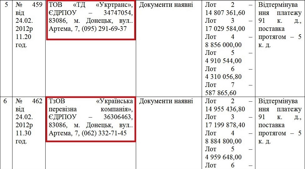 Місцезнаходження фірм у протоколі цінових пропозицій збігались – м. Донецьк, вул. Артема, 7.