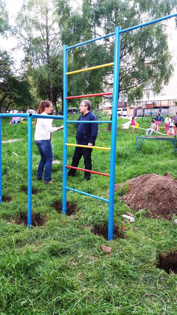 Тобі ніхто не допоможе, якщо сам собі не допоможеш. Цей принцип Юрій Наконечний, як і вся його сім`я, сповідує у власному житті, і хотілося б, аби щораз більше трускавчан розуміли цю нехитру істину. Здається, так воно і є. Для прикладу, сьогодні, 25 травня, біля будинку № 12 на вул. Стуса мешканці теж обговорювали питання наведення ладу. Участь в обговоренні взяли ініціативні мешканці Стуса, 12, а також заступник міського голови Трускавця з житлово-комунальних питань Олексій Балицький, директор КП «Парк курортний» Назар Веретко, директор фірми «Сяйво» Ігор Зубрицький. Одним з питань, які обговорювалися – облаштування дитячого майданчика.
