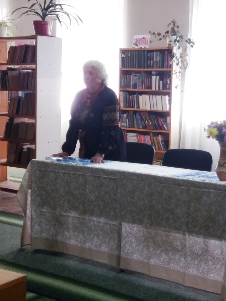 Галина Кваснікевич (мати воїна АТО) подарувала нам особистого вірша про трагічні сторінки нескореної України. На завершення зустрічі у виконанні авторки з трепетом прозвучали повстанські пісні .