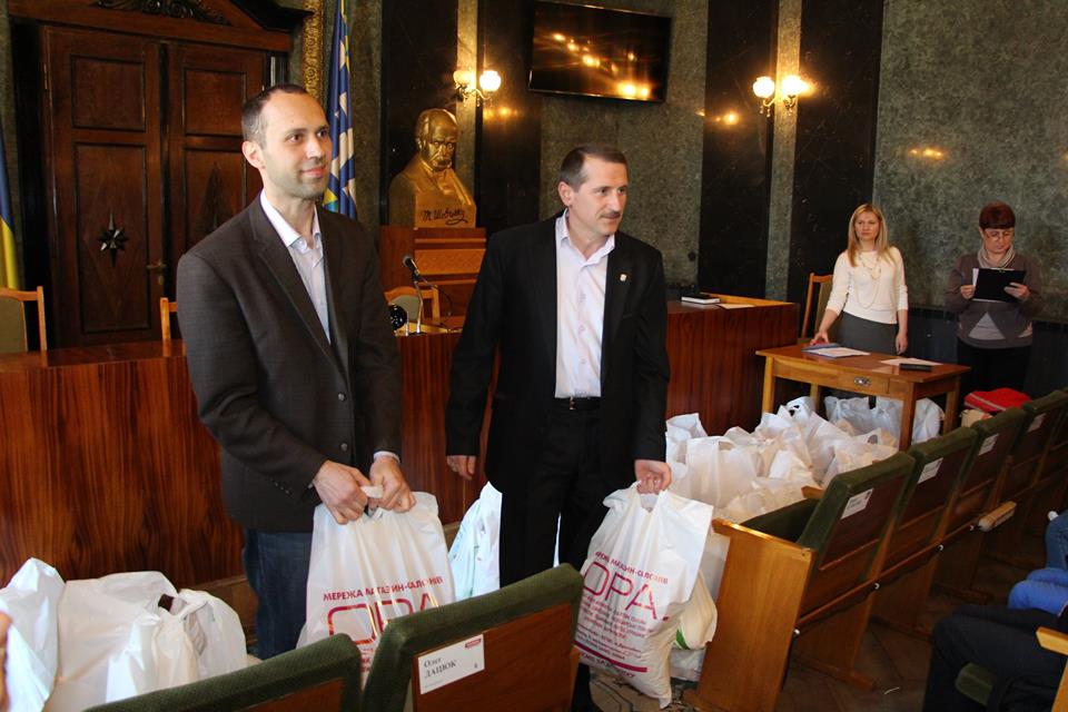 У четвер, 28 квітня, міський голова Тарас Кучма у мармуровій залі Ратуші вручив понад сто святкових подарунків особам, які перебувають на обслуговуванні Дрогобицького міського територіального центру соціального обслуговування пенсіонерів та одиноких непрацездатних громадян. Загалом для осіб цієї категорії осіб центр напередодні Великодня підготував 400 пакунків. Окрім того, за сприяння Дрогобицького міського центру соціальних служб для сім’ї, дітей та молоді продуктові подарунки отримали близько 100 родин. Таку ж кількість наборів до великоднього столу придбало для сімей, у яких є діти-інваліди, управління праці та соціального захисту Дрогобицької міської ради. Урочисто пакунки родинам передав міський голова Тарас Кучма, заразом привітавши їх із прийдешнім святом Воскресіння Христового.