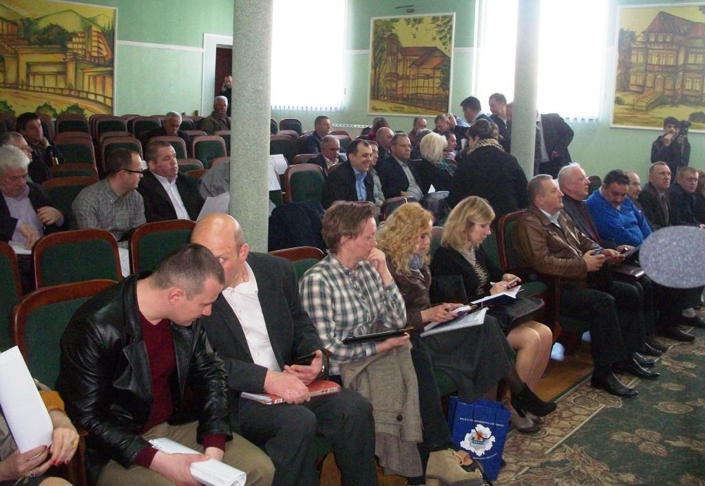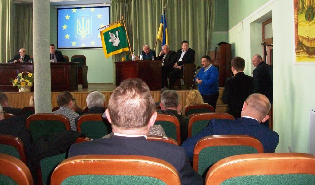 На фото: Трускавецька міська рада; під час сесії; виступають голова робочої групи з Дрогобича Володимир Кондзьолка та генеральний директор ТзОВ «Трускавецький водоканал» Володимир Возняк.