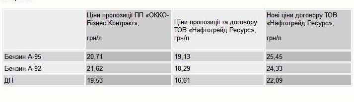 Згідно з договором, ціна за одиницю пального становила: А-95 – 19,13 грн/л, А-92 – 18,29 грн/л, ДП – 16,61 грн/л.