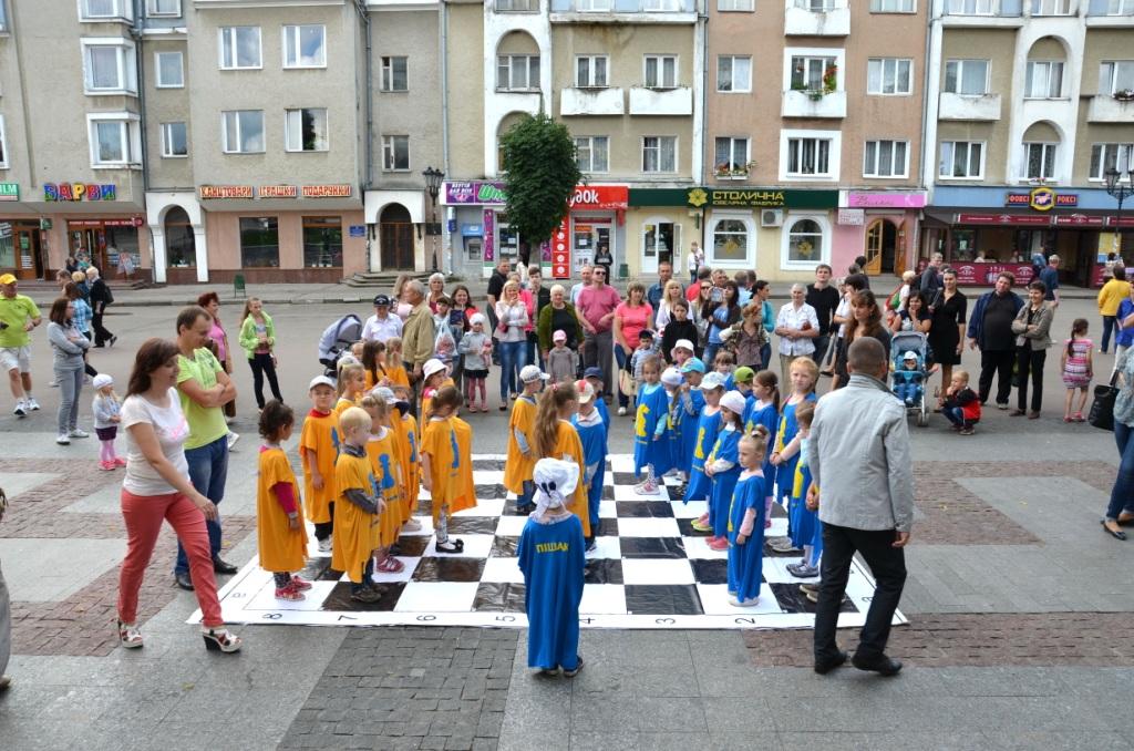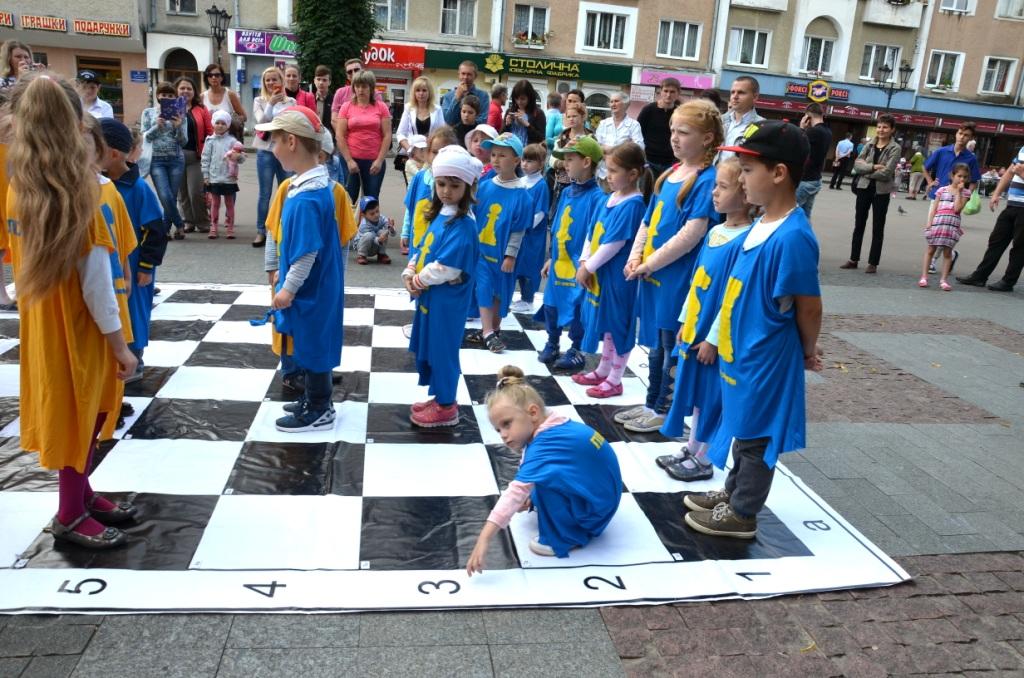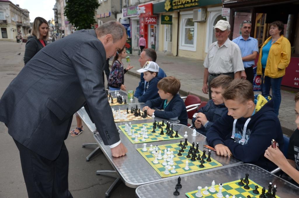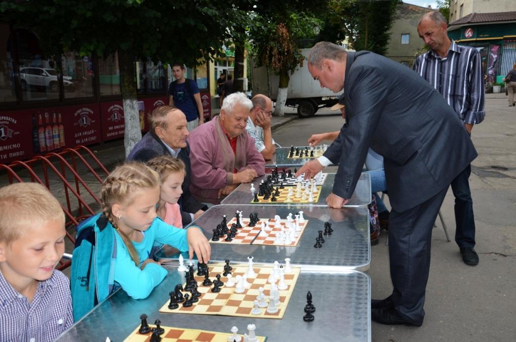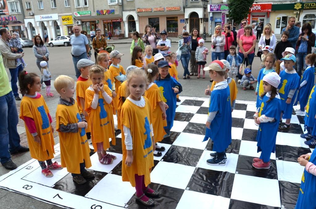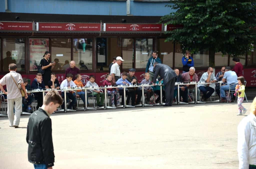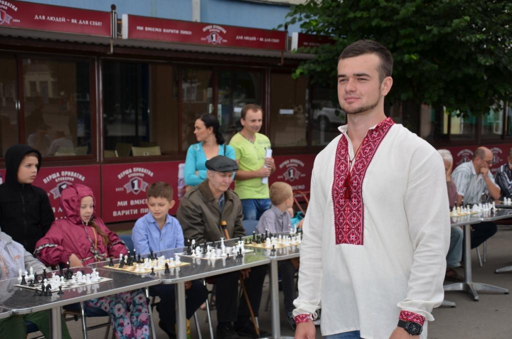Захопливе видовище розпочалося 20 липня на площі Ринок у Дрогобичі. Зі святом Шахів привітали присутніх заступник Дрогобицького міського голови з гуманітарних питань Олег Дукас, майстер спорту України з шахів Святослав Попович та кандидат в майстри спорту України Іван Летнянка. З нагоди міжнародного Дня шахів на майдані Ринок відбулася театралізована вистава за участю маленьких дрогобичан та сеанс одночасної гри з майстром спорту України з шахів Святославом Поповичем (м. Львів). Спочатку у строкатих костюмах шахових фігур під марш композитора Майкла Камена вийшли вихованці дитсадка № 15 «Лелеченька». «Фігури вишикувалися, готові до бою… і ми розпочинаємо наш бій!» – урочисто оголосив ведучий заходу Іван Летнянка. За підтримки кандидатів в майстри спорту з шахів Олександра Соловйова та Володимира Кузика ступали на оголошене місце шахової «дошки» живі фігури: пішаки, коні, ферзь, король… Ходи шахових фігур, які оголошував з мікрофона Іван Летнянка, відображав на дерев’яній дошці член Клубу Назар Зрайло. За всім спостерігали глядачі. Цікаво, що партія, яку представили діти на виставі «живих шахів», зіграна у 1857 році американським шахістом, уродженцем Франції Наполеоном Мараше і геніальним американським шахістом Полом Морфі. Пол Морфі, до речі, вважається першим шаховим вундеркіндом після створення сучасних правил шахів. Навколо цього видовища збиралися батьки дітей, вихователі дитсадка та перехожі. Маленькі артисти в образі шахових фігур розіграли блискучу гру, впродовж якої за 20 ходів було поставлено мат королю. Після такої вистави Іван Летнянка розповів захопливу історію про зародження шахів, їх роль у науці та житті тощо. Після цього епіцентр подій перемістився на тимчасовий шаховий майданчик біля стін кав’ярні «Фоксі-Роксі», де розпочався сеанс одночасної гри зі Святославом Поповичем. У цьому турнірі взяли участь як юні шанувальники інтелектуального виду спорту, так і дрогобичани літнього віку.