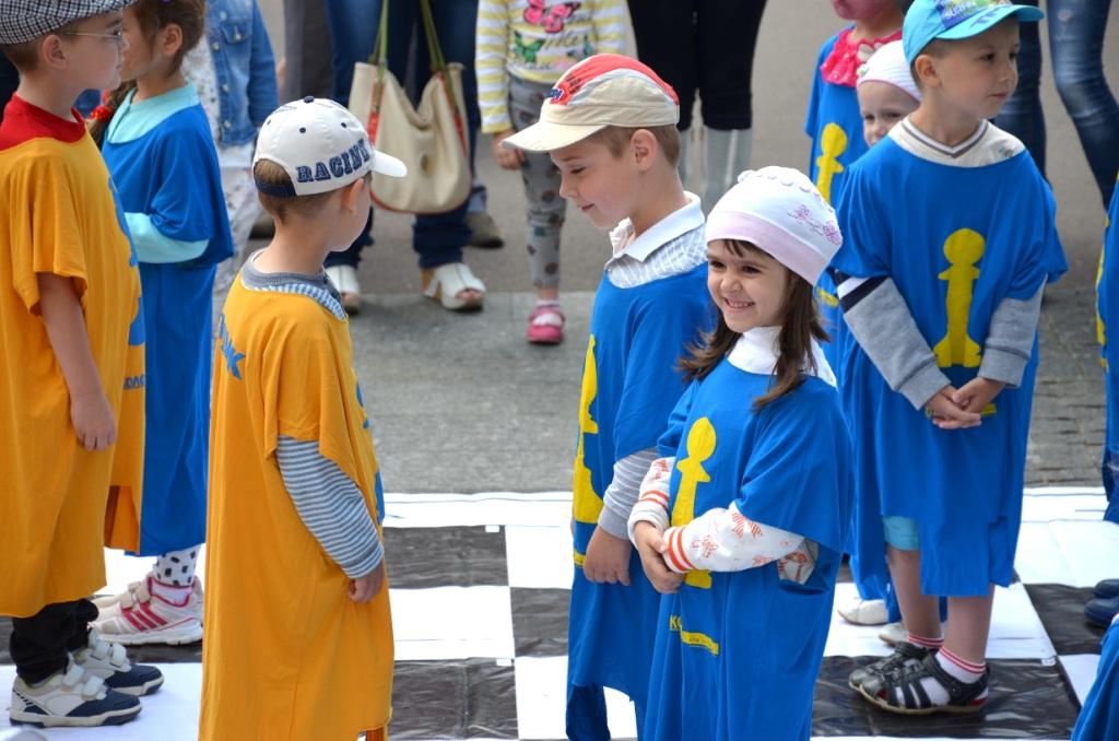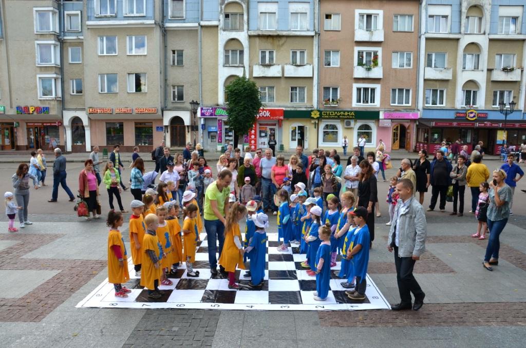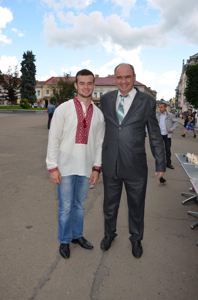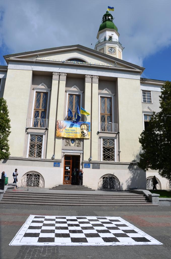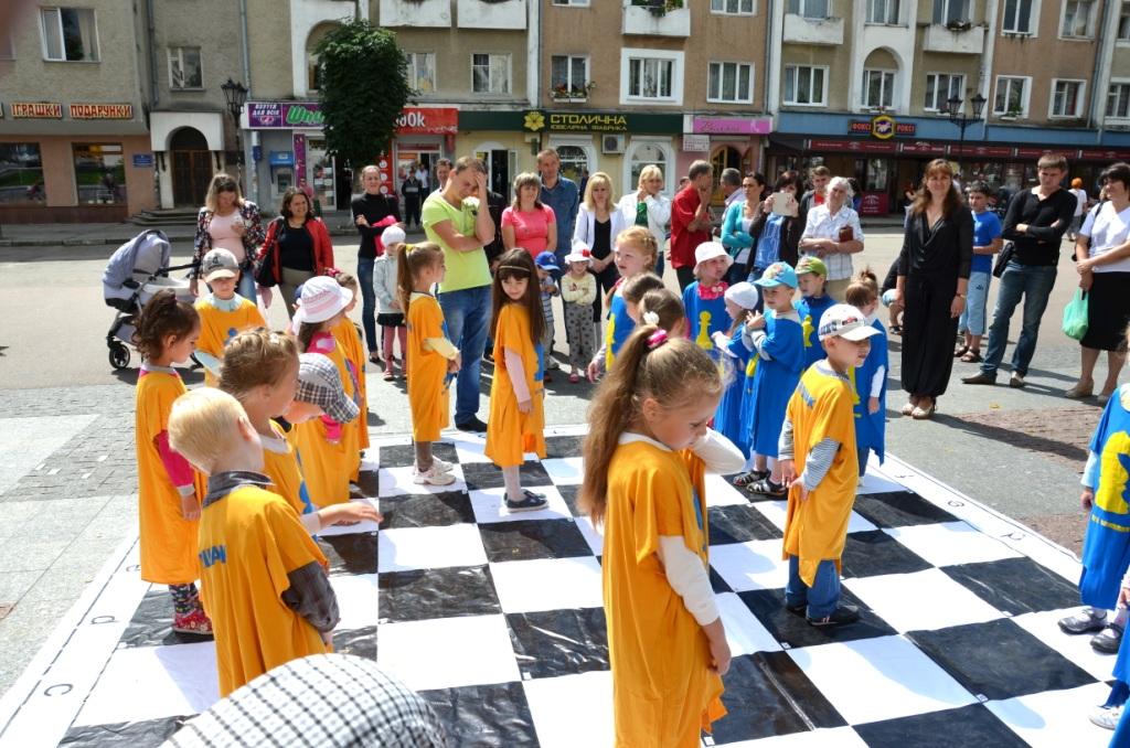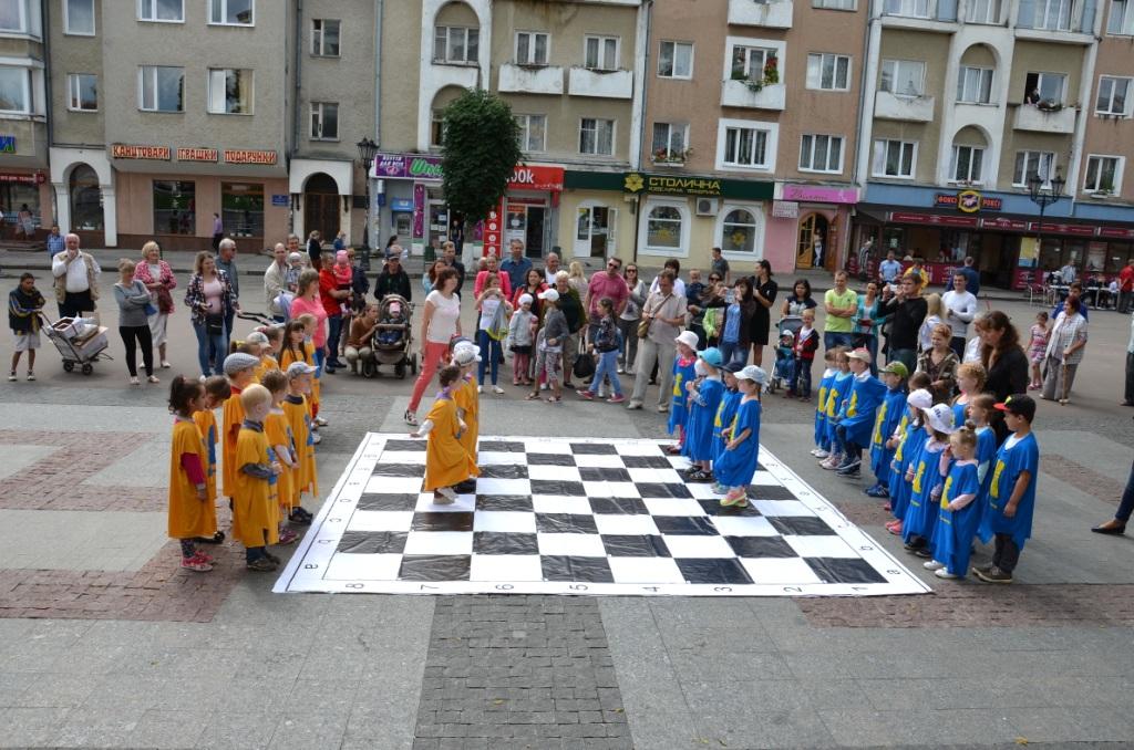 Захопливе видовище розпочалося 20 липня на площі Ринок у Дрогобичі. Зі святом Шахів привітали присутніх заступник Дрогобицького міського голови з гуманітарних питань Олег Дукас, майстер спорту України з шахів Святослав Попович та кандидат в майстри спорту України Іван Летнянка. З нагоди міжнародного Дня шахів на майдані Ринок відбулася театралізована вистава за участю маленьких дрогобичан та сеанс одночасної гри з майстром спорту України з шахів Святославом Поповичем (м. Львів). Спочатку у строкатих костюмах шахових фігур під марш композитора Майкла Камена вийшли вихованці дитсадка № 15 «Лелеченька». «Фігури вишикувалися, готові до бою… і ми розпочинаємо наш бій!» – урочисто оголосив ведучий заходу Іван Летнянка. За підтримки кандидатів в майстри спорту з шахів Олександра Соловйова та Володимира Кузика ступали на оголошене місце шахової «дошки» живі фігури: пішаки, коні, ферзь, король… Ходи шахових фігур, які оголошував з мікрофона Іван Летнянка, відображав на дерев’яній дошці член Клубу Назар Зрайло. За всім спостерігали глядачі. Цікаво, що партія, яку представили діти на виставі «живих шахів», зіграна у 1857 році американським шахістом, уродженцем Франції Наполеоном Мараше і геніальним американським шахістом Полом Морфі. Пол Морфі, до речі, вважається першим шаховим вундеркіндом після створення сучасних правил шахів. Навколо цього видовища збиралися батьки дітей, вихователі дитсадка та перехожі. Маленькі артисти в образі шахових фігур розіграли блискучу гру, впродовж якої за 20 ходів було поставлено мат королю. Після такої вистави Іван Летнянка розповів захопливу історію про зародження шахів, їх роль у науці та житті тощо. Після цього епіцентр подій перемістився на тимчасовий шаховий майданчик біля стін кав’ярні «Фоксі-Роксі», де розпочався сеанс одночасної гри зі Святославом Поповичем. У цьому турнірі взяли участь як юні шанувальники інтелектуального виду спорту, так і дрогобичани літнього віку.