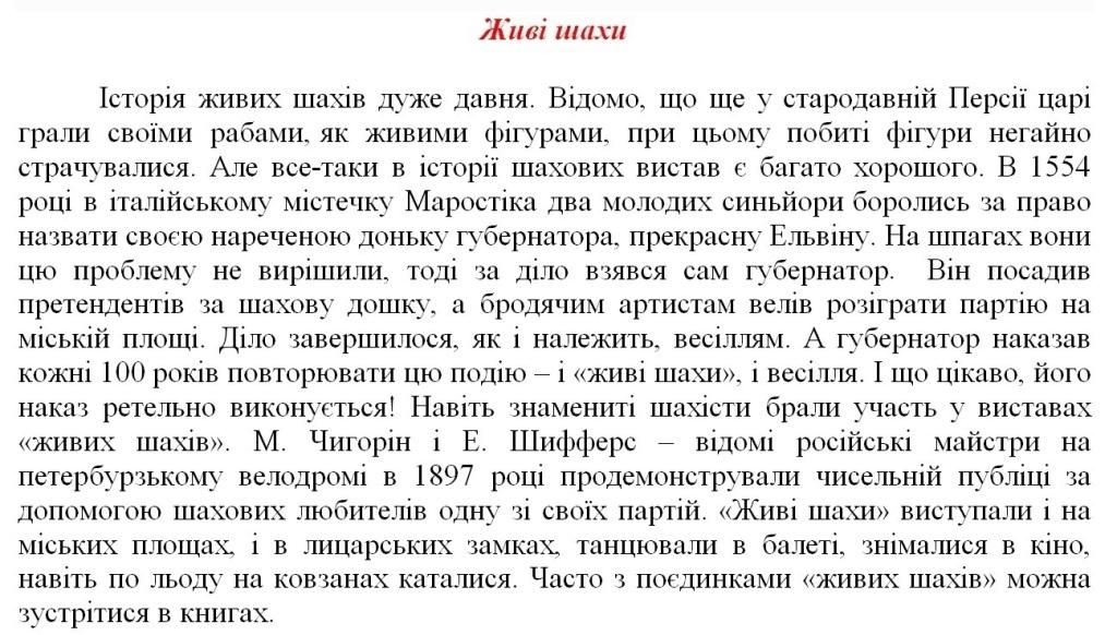 Шахи – це не просто захоплива гра. Це – азарт і потужний рушій розвитку логічного мислення у гравців. Шахи є своєрідними вчителями, які змалку прищеплюють гравцям ази управління (керівництва), формують задатки військових стратегів, нагадують процеси програмування, що відбуваються у комп’ютері. Досвідчений шахіст може зауважити, що гра певним чином нагадує життя придворних з інтригами, військові баталії між ворогуючими сторонами і, нарешті, жертви, до яких іноді доводиться вдаватися заради поразки протилежної сторони. Шахи, воістину – це гра лицарів та шляхетних воїнів-переможців, яка сприяє формуванню еліти нації.