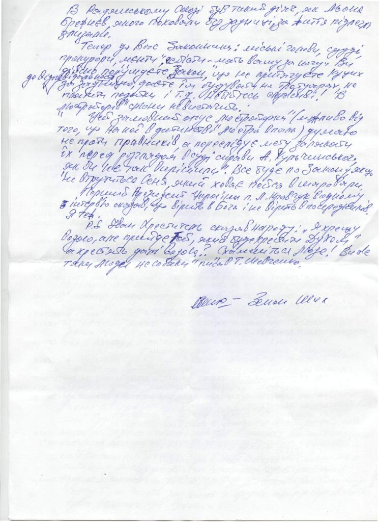 Цей замовний опус «люстраторки» (можливо від того, що на неї в дитинстві люстра впала), думаю не проти правників, а переслідує мету залякати їх перед розглядом в суді справи А. Кульчинського, якби не так вирішили. Все буде по закону, якщо не втрутиться Сеня, який ховає пейса в шаровари.