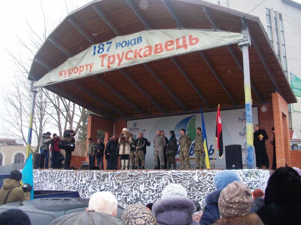 Врешті кілька слів трускавчанам сказали і самі воїни. Напевно, нікого не варто переконувати, які потреби у наших бійців у зоні АТО, особливо в умовах зими. Тож допомога у будь-якій формі тільки вітається. Як зазначив міський голова Трускавця, хоча за останній рік ми стали біднішими матеріально, зате багатшими духовно, більш загартованими та дружніми.