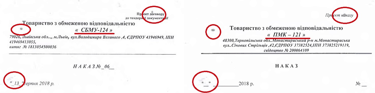 Крім того, подані на торги конкурентами «СБМУ-124» і «ПМК-121» документи мають однакові дефекти друку.