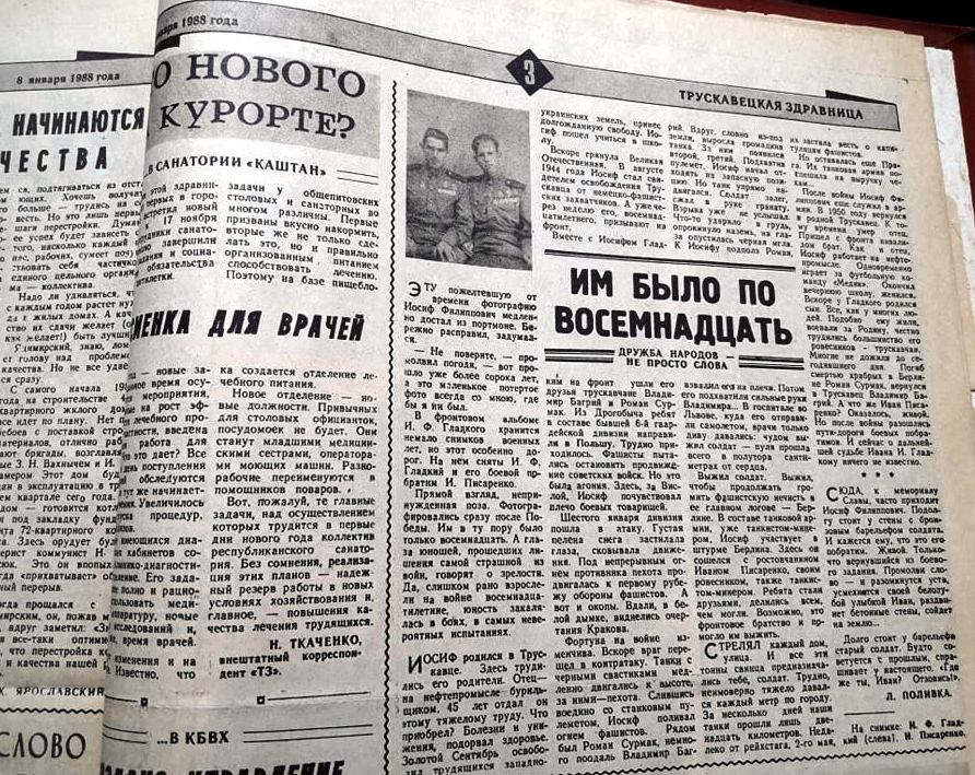 Ця тема болюча для мене, оскільки фронтовиком був мій батько Володимир Багрій. В статті «Їм було по 18» описано що й до чого. Стаття була написана Л. Поливком і надрукована 8 січня 1988 року в газеті «Трускавецкая здравница».