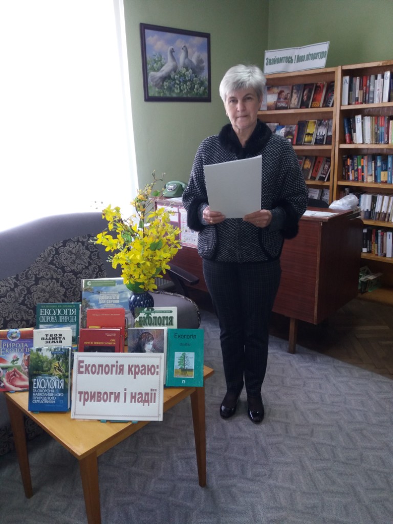 Провідний бібліотекар по роботі з юнацтвом Олександра Пфайфер разом з дітьми обговорювали проблеми екології та збереження навколишнього середовища. У наші дні турбота людини про чисте повітря, тишу, сонячне світло та багато інших цінностей природи стає невід`ємною частиною екологічної культури. Кожний із нас повинен дбайливо ставитися до природи, до всього живого на землі. Це не лише покращить екологічну ситуацію, але й створить прекрасний настрій, принесе величезне моральне задоволення, викличе почуття поваги до себе та до інших. Учням була представлена книжкова виставка по даній тематиці.