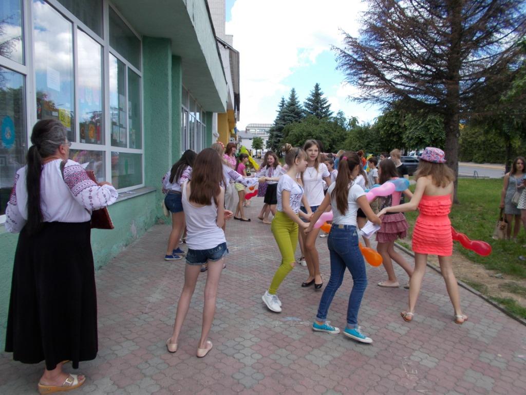 На подвір’ї біля бібліотеки для дітей м. Трускавця зібрались діти з табору відпочинку СЗШ №3 шостого та сьомого загонів з вчителями Світланою Мегес, Наталією Машненко, Ілоною Пархоменко, Даніїлою Лівчак та Валентиною Салань на літературно-музичне свято “Дитинство – це ти і я”.