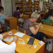 На зустріч з майстром прийшли користувачі бібліотеки, члени міської асоціації інвалідів. Присутні мали змогу переглянути документальний фільм «Дорога до храму» про життєвий та творчий шлях Йосипа Борисовича та взяти участь у майстер-класі по виготовленню зірки щастя. Пан Осташинський показував як необхідно поетапно працювати. Під час виконання роботи виникло розуміння, яка це клопітка робота та які незвичайні речі можна виготовити власноруч. Свою вправність показав член міської асоціації інвалідів Тарас Мадяк. Він першим виконав творчу роботу. Ювелірно точна робота займає час, вимагає винахідливості, творчості і, найголовніше, таланту.