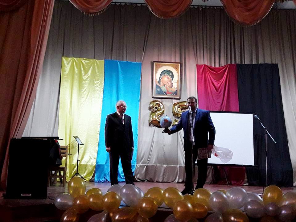 На урочистій церемонії святкування 25-літнього ювілею від імені ректора Надії Скотної привітав викладачів, студентів та випускників проректор Юрій Вовк, який, до речі, закінчував факультет менеджменту та маркетингу ДДПУ, що був розміщений в одному корпусі з істфаком. Юрій Вовк вручив подяки та грамоти завідувачам кафедр, а декан істфаку отримав від ректорату символічний подарунок у вигляді глобуса – щоб не було такого місця на Землі, де б не ступала нога випускника істфаку.