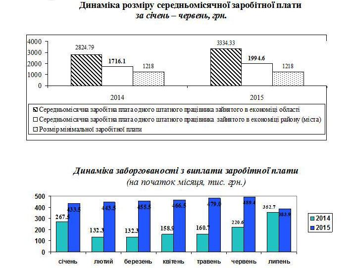 Сума невиплаченої заробітної плати станом на 1 липня 2015р. працівникам підприємств-банкрутів становить 65,3 тис. грн. Частка боргу до підсумку становить 0,2% по області.