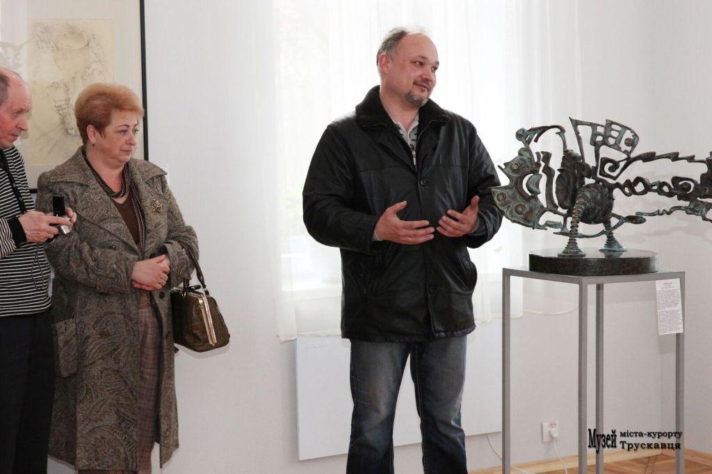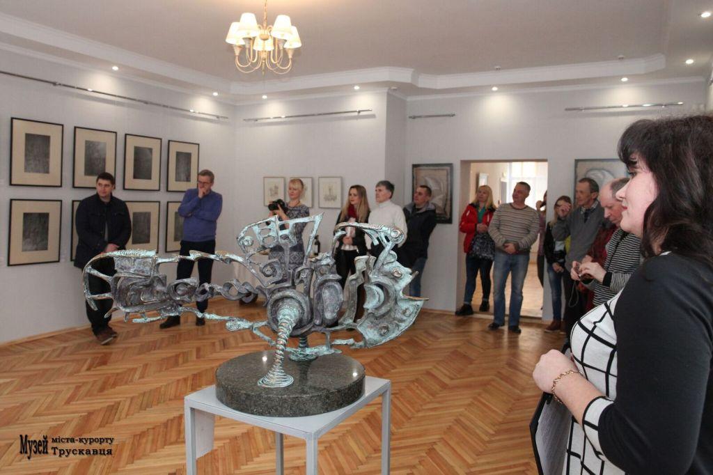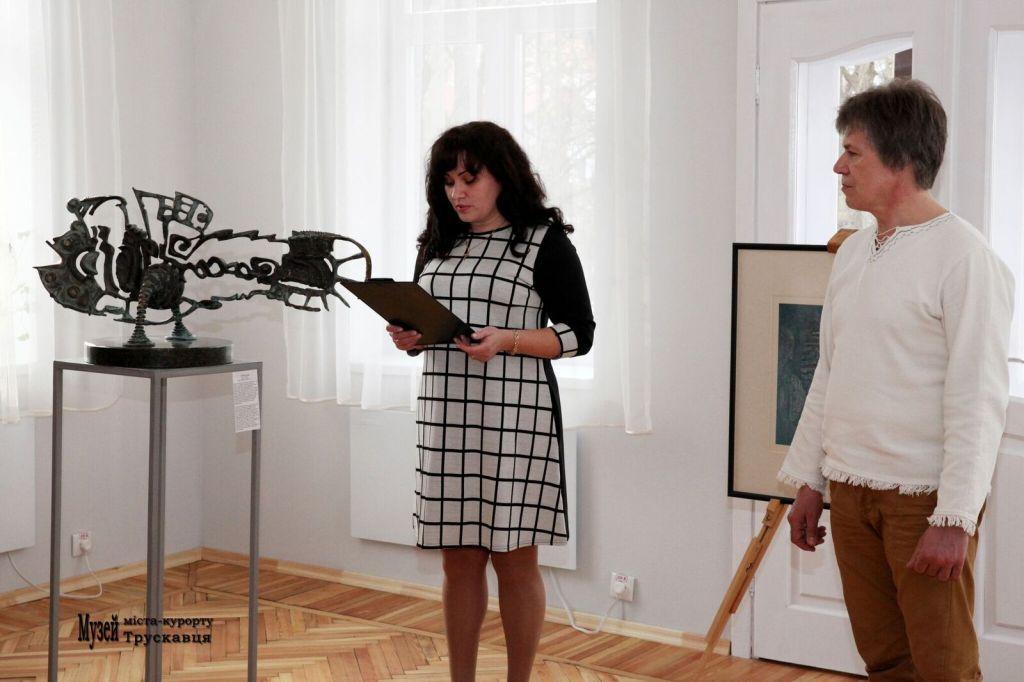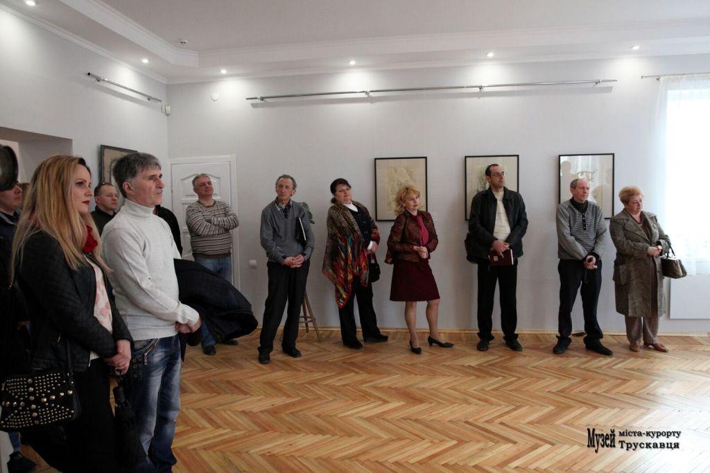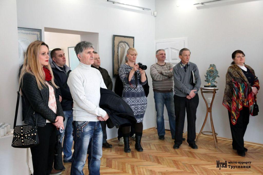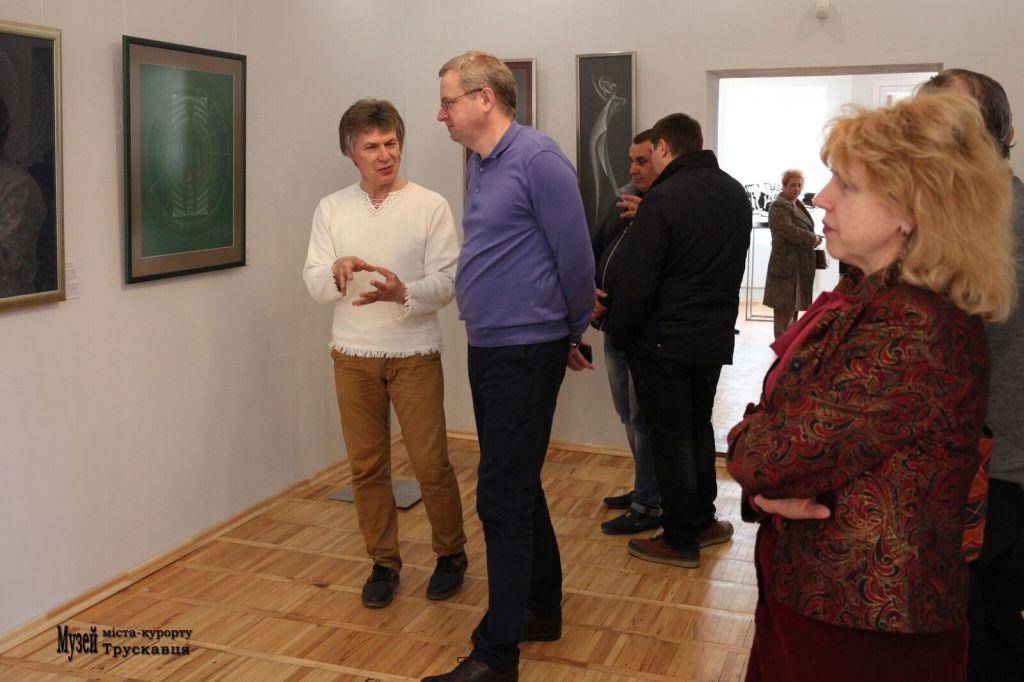– Коли я приїхав до Львова, то зрозумів – це моє місто, – розповідає на відкритті виставки Руслан Романишин. Про Трускавець каже, що бував тут «фрагментарно», але зараз місто-курорт відкривається для митця зовсім по-іншому. Можливо, причиною цього є факт, що нова влада почала все-таки дбати про курорт, а не тільки про власні меркантильні інтереси, як це було за часів злочинної влади Януковича та «Трускавецького криміналітету».