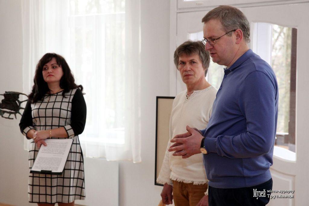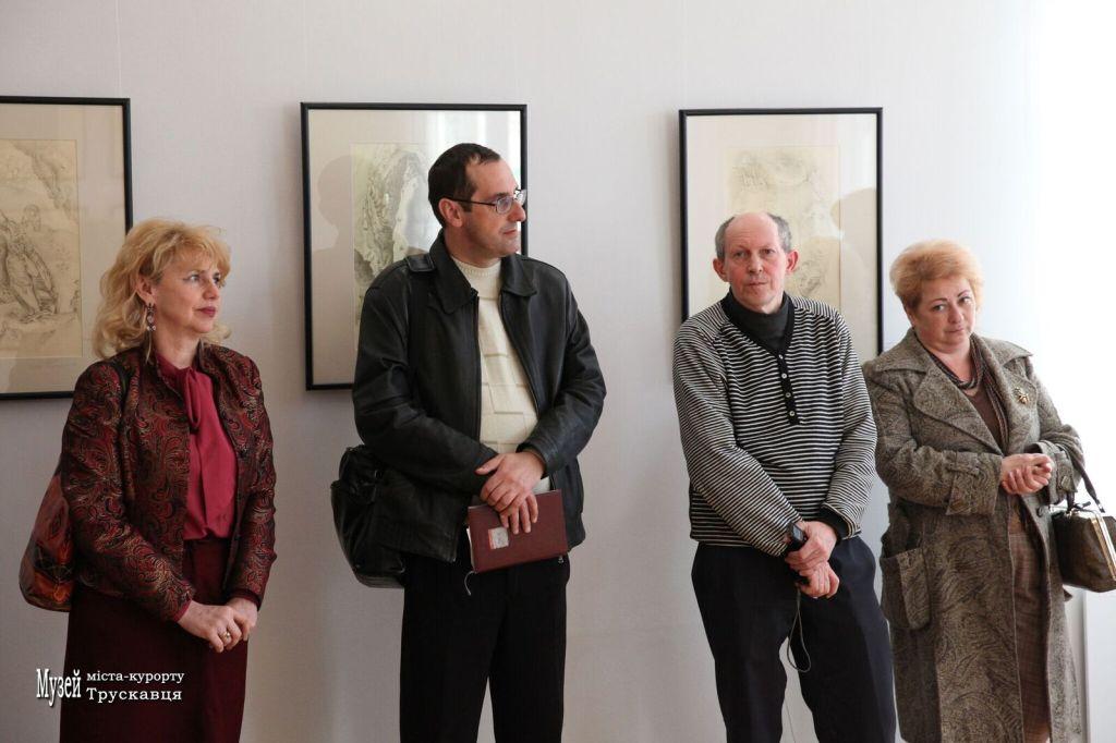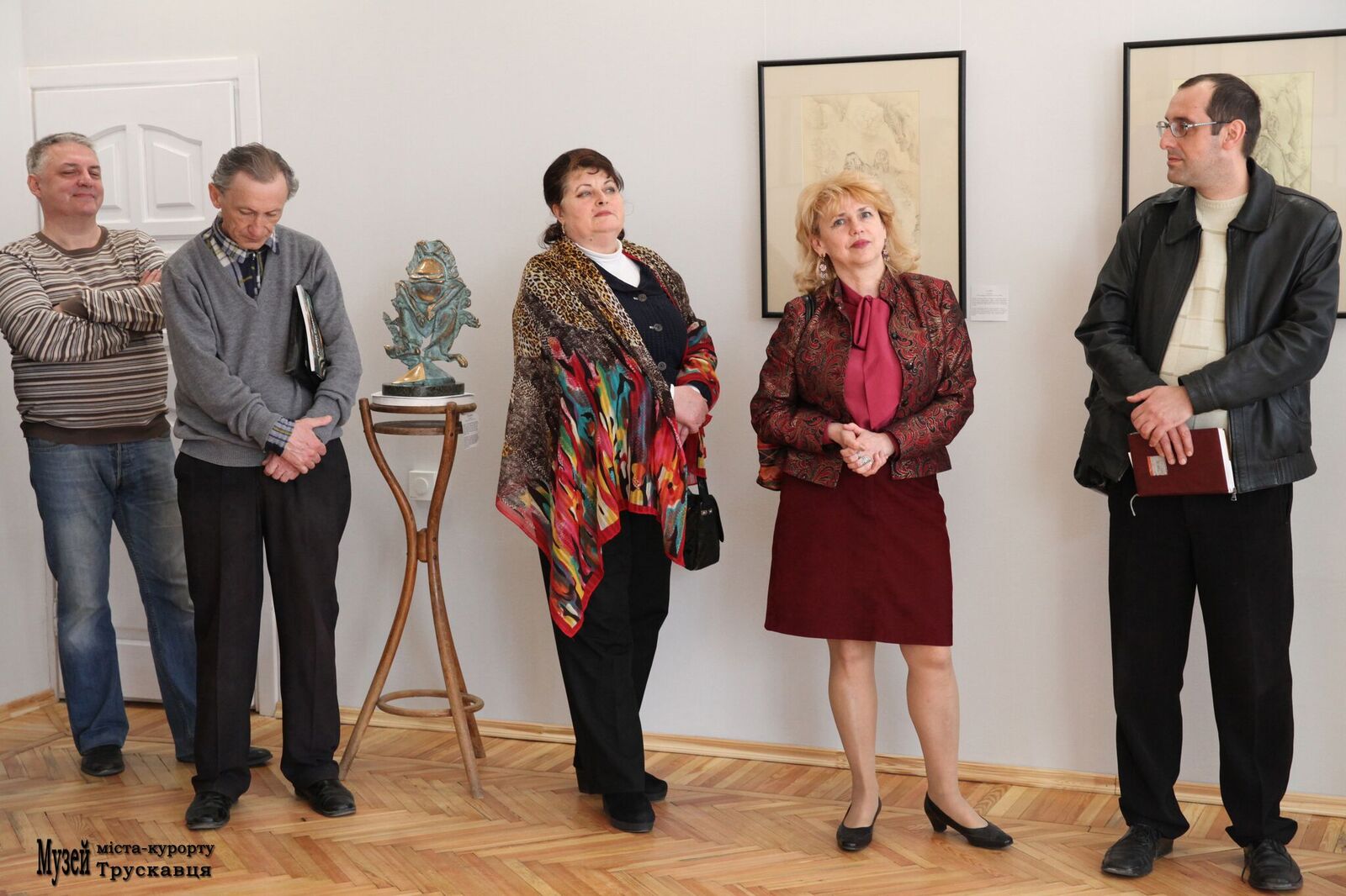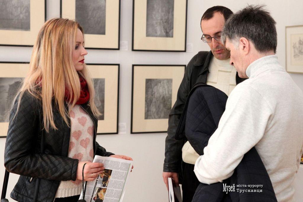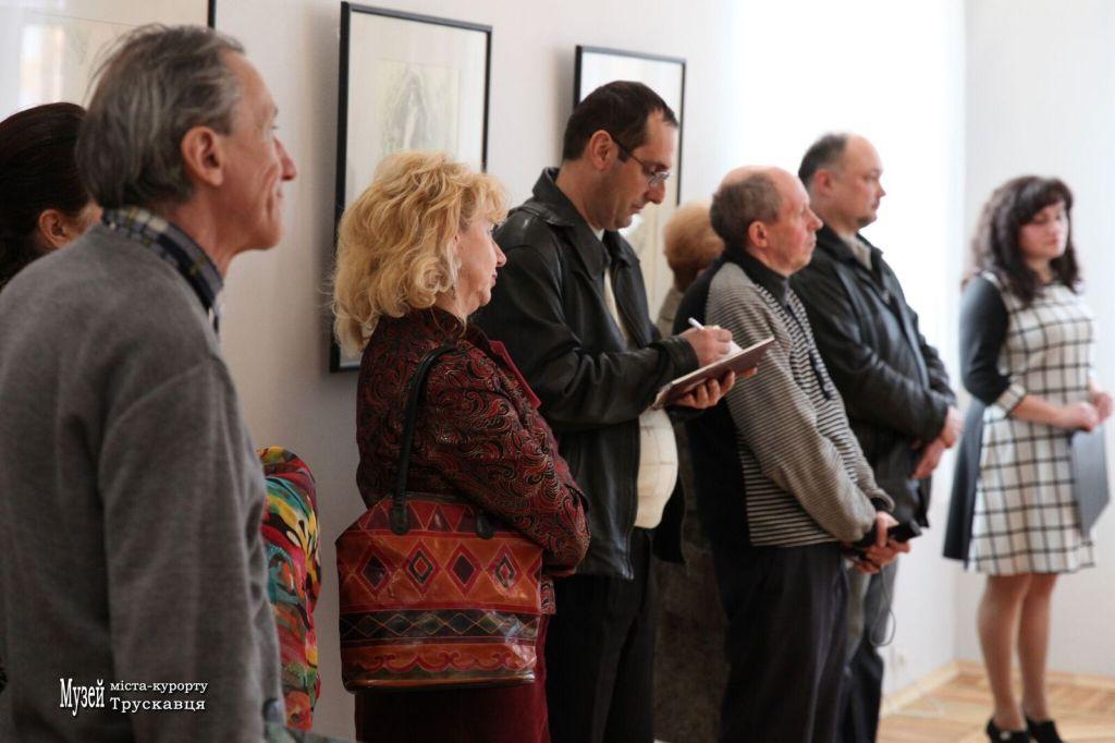 – Коли я приїхав до Львова, то зрозумів – це моє місто, – розповідає на відкритті виставки Руслан Романишин. Про Трускавець каже, що бував тут «фрагментарно», але зараз місто-курорт відкривається для митця зовсім по-іншому. Можливо, причиною цього є факт, що нова влада почала все-таки дбати про курорт, а не тільки про власні меркантильні інтереси, як це було за часів злочинної влади Януковича та «Трускавецького криміналітету».