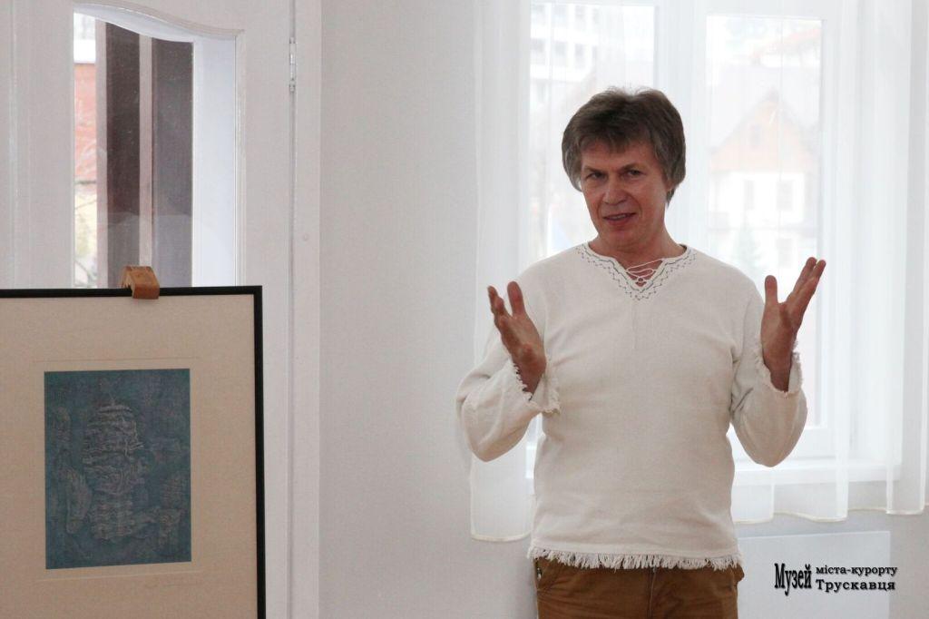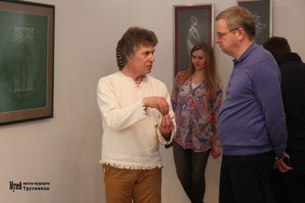 – Спочатку Руслан Романишин експонувався в Дрогобичі, а потім погодився виставити свої роботи у вас в Трускавці. Це сучасне мистецтво абстракціонізму, яке несе філософську думку і навіть має певне коріння східного напрямку, – розповідає відомий дрогобицький митець, лауреат всесвітньої виставки «Експо-2015» в Мілані та митецького фестивалю в Кальярі на Сардинії (Італія) Василь Лялюк.