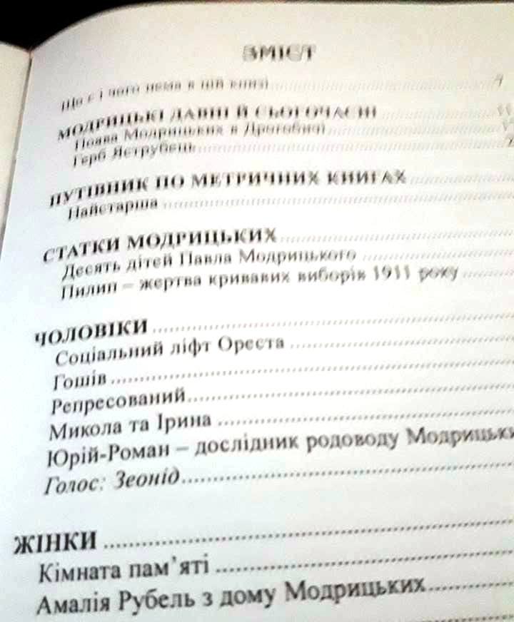 Нещодавно світ побачила нова книга нашої славної землячки Галини Пагутяк. «Світ Модрицьких, передміщан з Дрогобича» – це ґрунтовна розвідка про рід Модрицьких (назва походить від села Модричі) у XIII-XXI ст.ст. Письменниця одну з презентацій книг провела і в курортному Трускавці – 30 листопада в музеї історії міста-курорту.